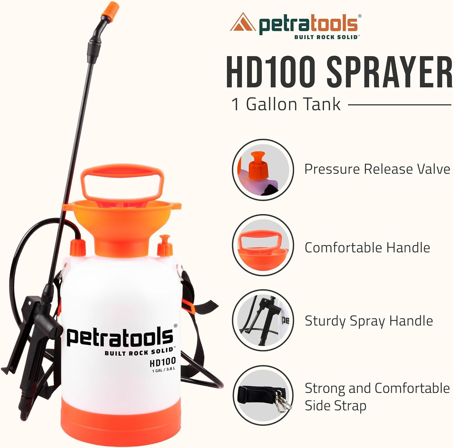 PetraTools 1 Gallon Garden Sprayer, Hand Pump Sprayer, Plant Sprayer & Weed Sprayer, Chemical Lawn Sprayer, Water Sprayer for Plants, 1 Gallon Sprayer with Pump, Sprayers in Lawn and Garden – HD100