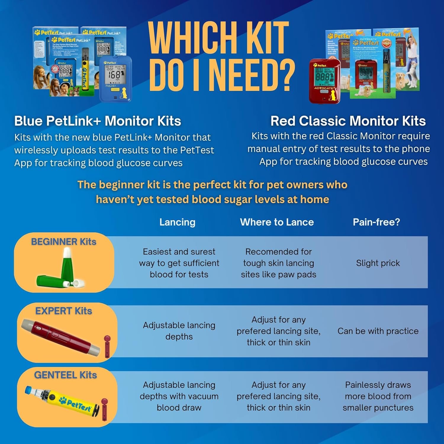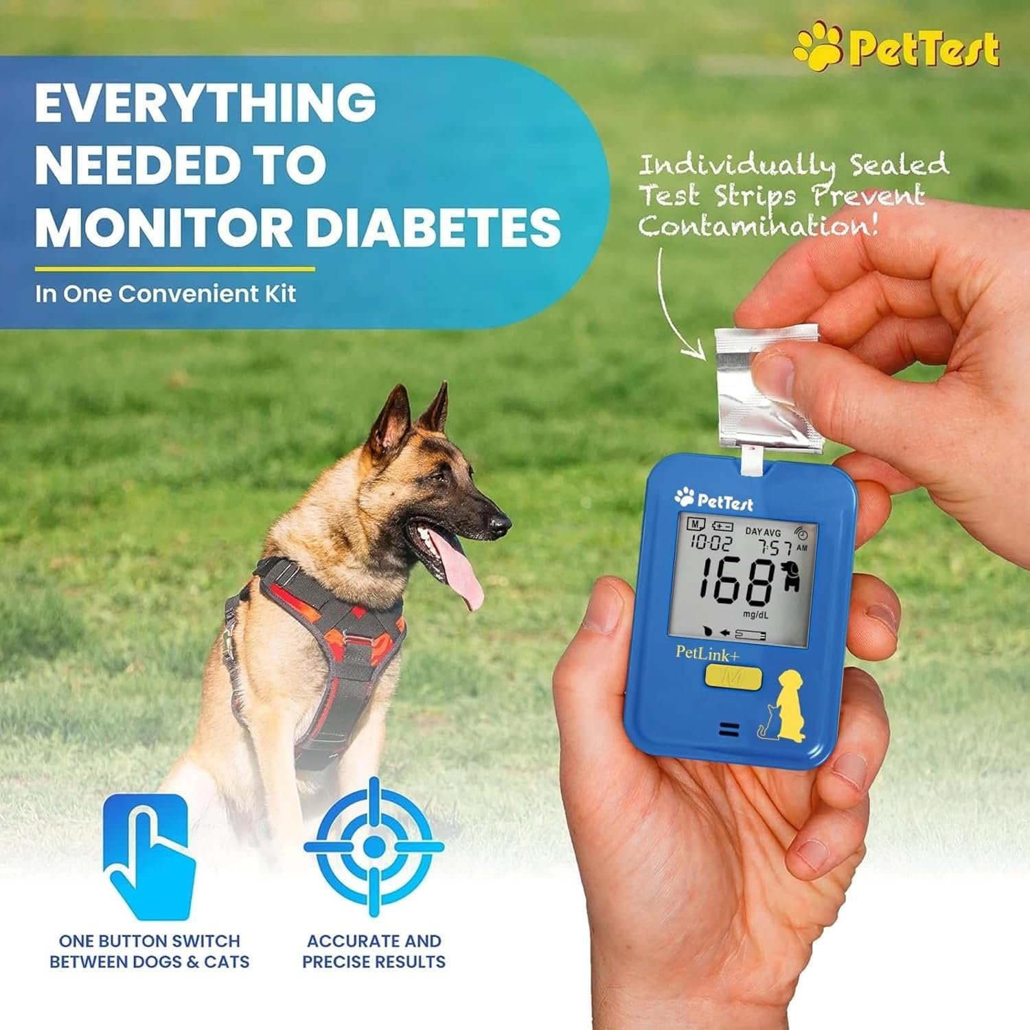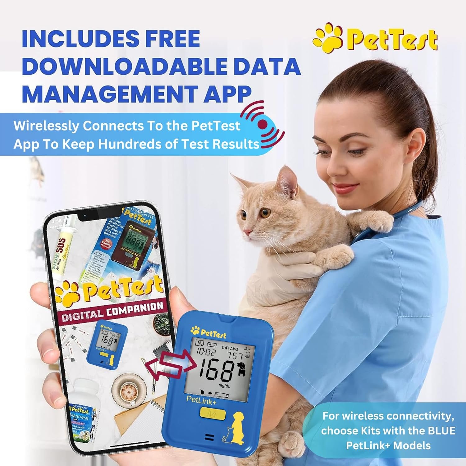 PetTest Painless Glucose Monitoring Kit for Dogs & Cats, Diabetic Pet Blood Sugar Check Gear, Includes Wireless PetLink+ Meter, 50 Test Strips, Genteel Lancing Device, 50 Lancets, Soft Carrying Case