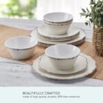 12 PIECE SET: includes 4 each of: 11-1/4 inch dinner plate, 8-3/4 inch salad plate, and 6-inch bowl with a 23-fluid ounce capacity