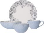 Customers appreciate the dishware place setting’s nice appearance and durability. They find it classy and serene to look at, with a pattern they like. The set is made of good quality and won’t break or chip easily. It stands up well in the dishwasher.