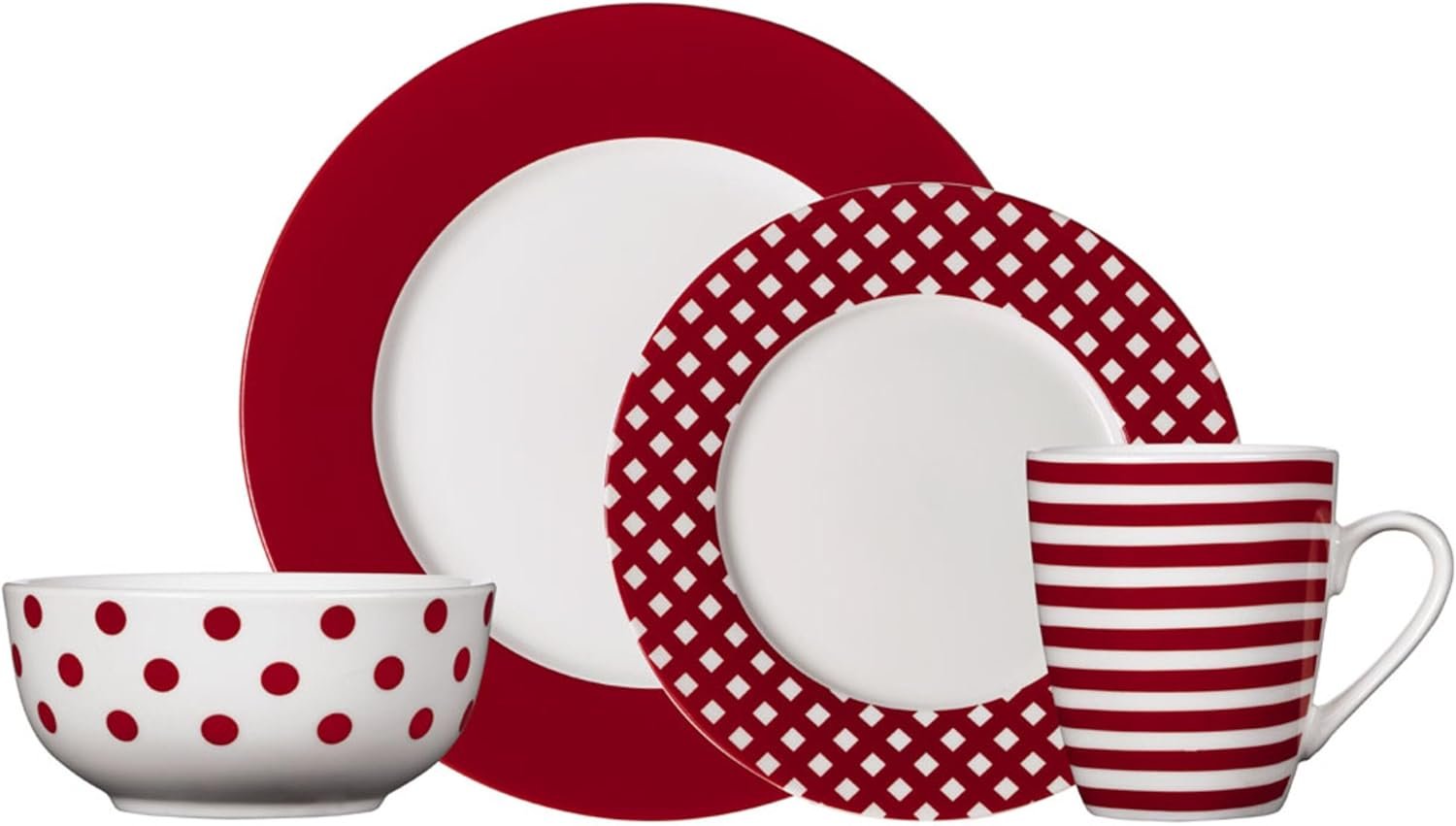 Pfaltzgraff Kenna Red 16-Piece Porcelain Dinnerware Set, Service for 4