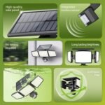 HIGH BRIGHTNESS AND WIDE BEAM ANGLE – Our solar floodlight boasts 302 high-brightness LEDs that emit a cool daylight color temperature of 7000K, producing a brightness of 1200 lumens. The light can be distributed widely with the help of three adjustable heads that can be rotated by 130°. It can cover a distance of up to 65.6ft.