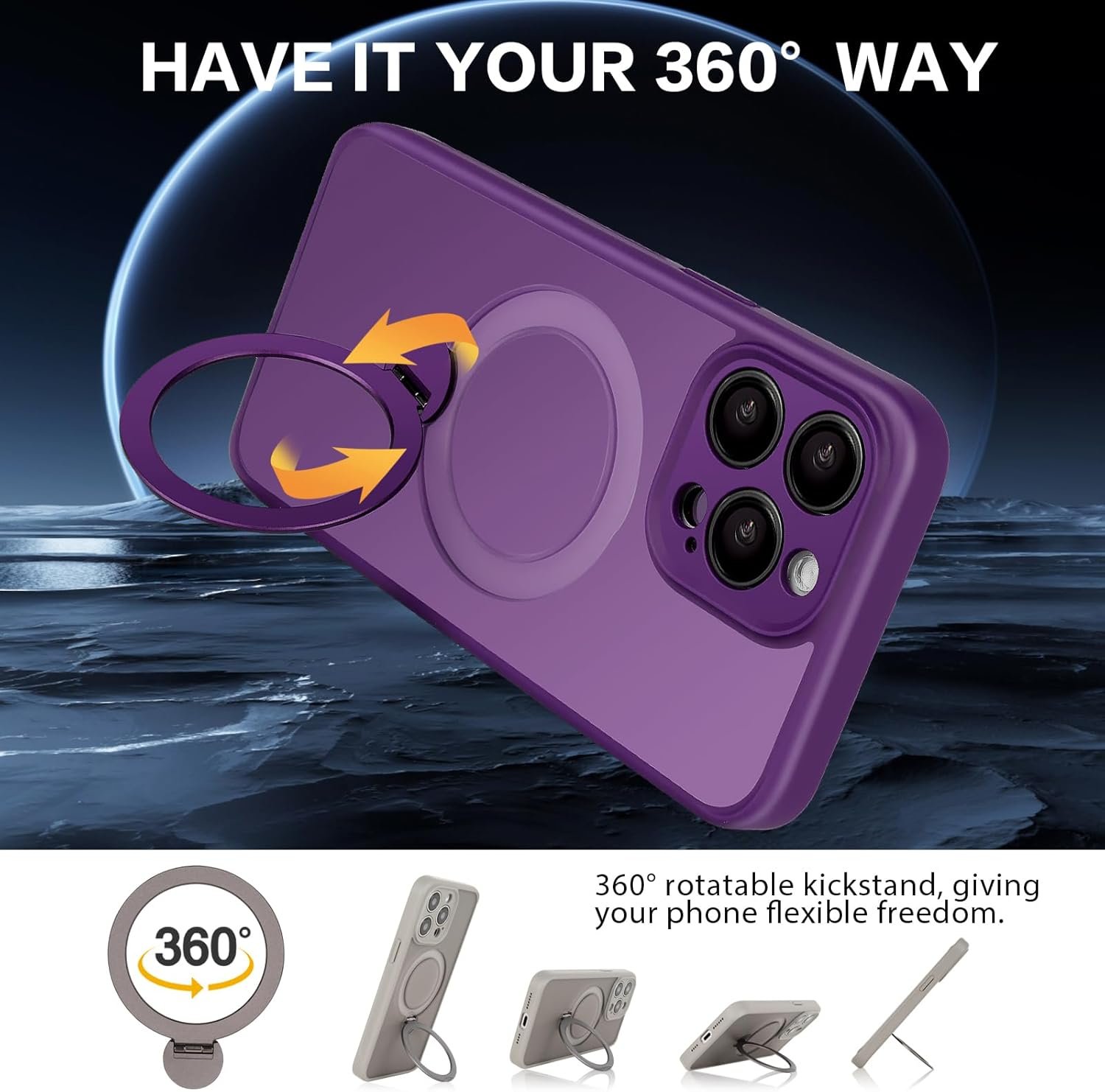 Phone Case for iPhone 15 Pro Max 6.7 inches, Military Grade Shockproof 360° Rotatable Magnetic Ring Stand MagSafe Compatible, Purple