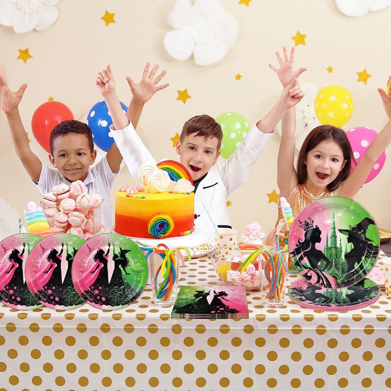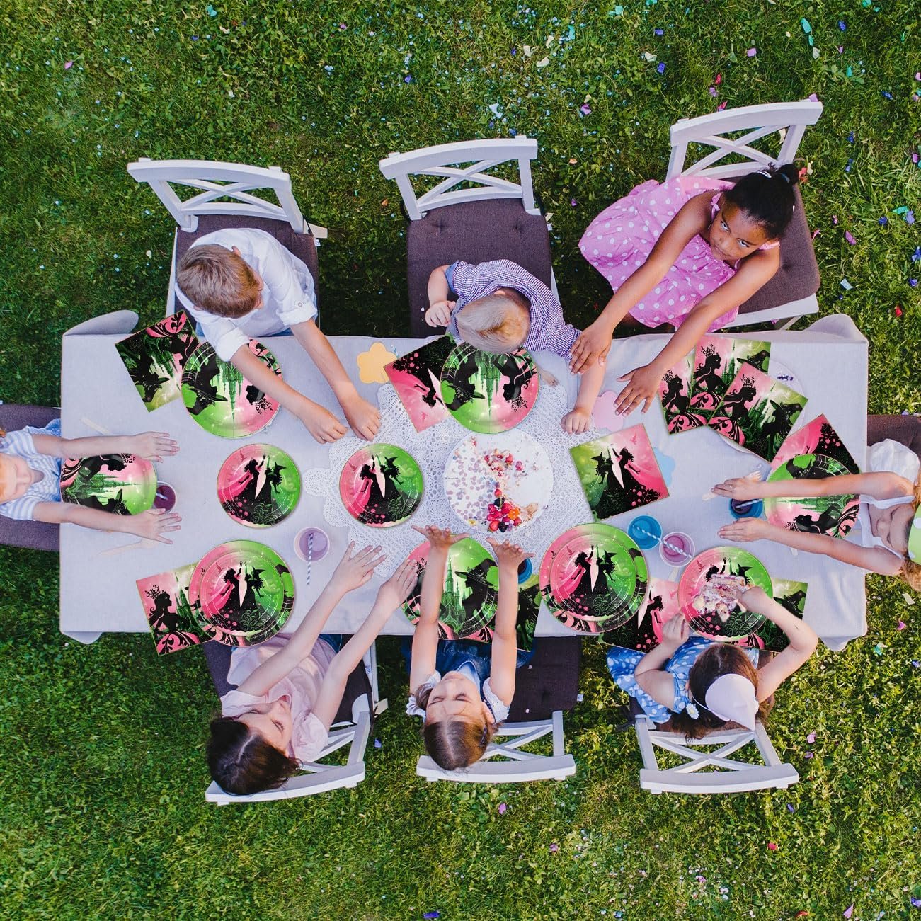 Pink and Green Party Decorations Witch Party Decorations Supplies Plates and Napkins Disposable Dessert Plates Cute Girls Kid Princess Witch Birthday Party Decoration