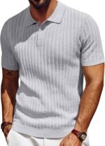 PJ PAUL JONES Mens Knit Polo Shirt Short Sleeve Textured Polo Shirts Casual Summer Collared Polo T Shirt