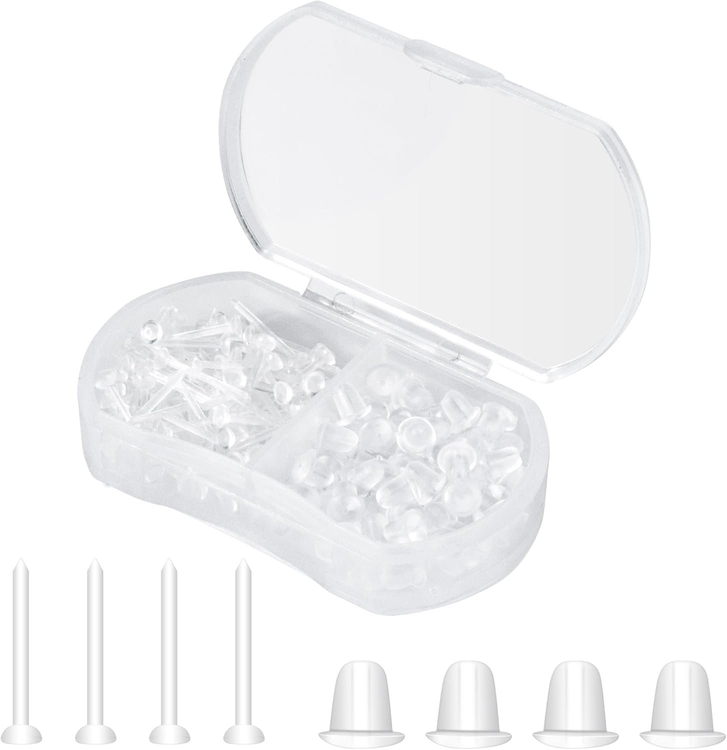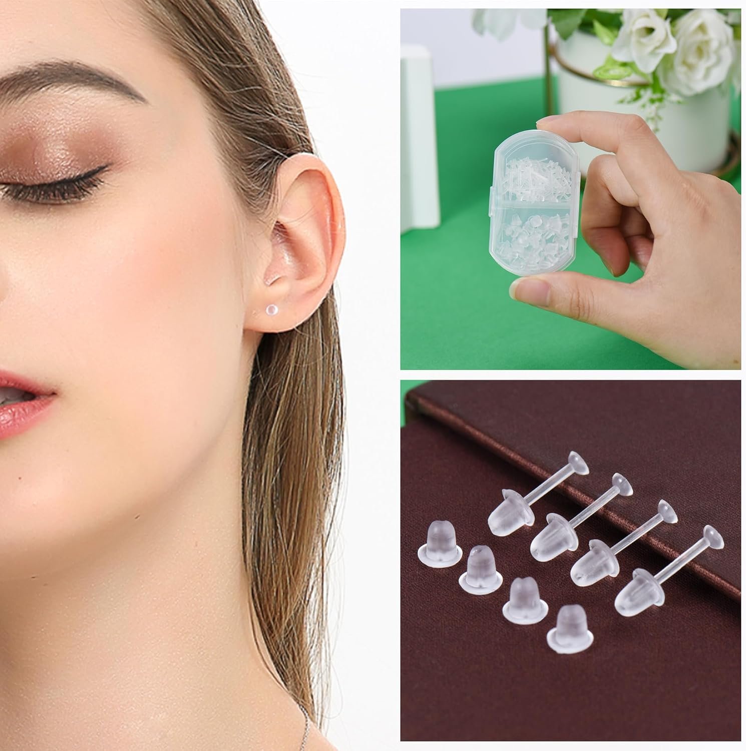 High Quality:Earring backs are made of clear silicone rubber, earring posts are made of plastic,they are comfortable, lightweight and durable, not allergic to your ears.