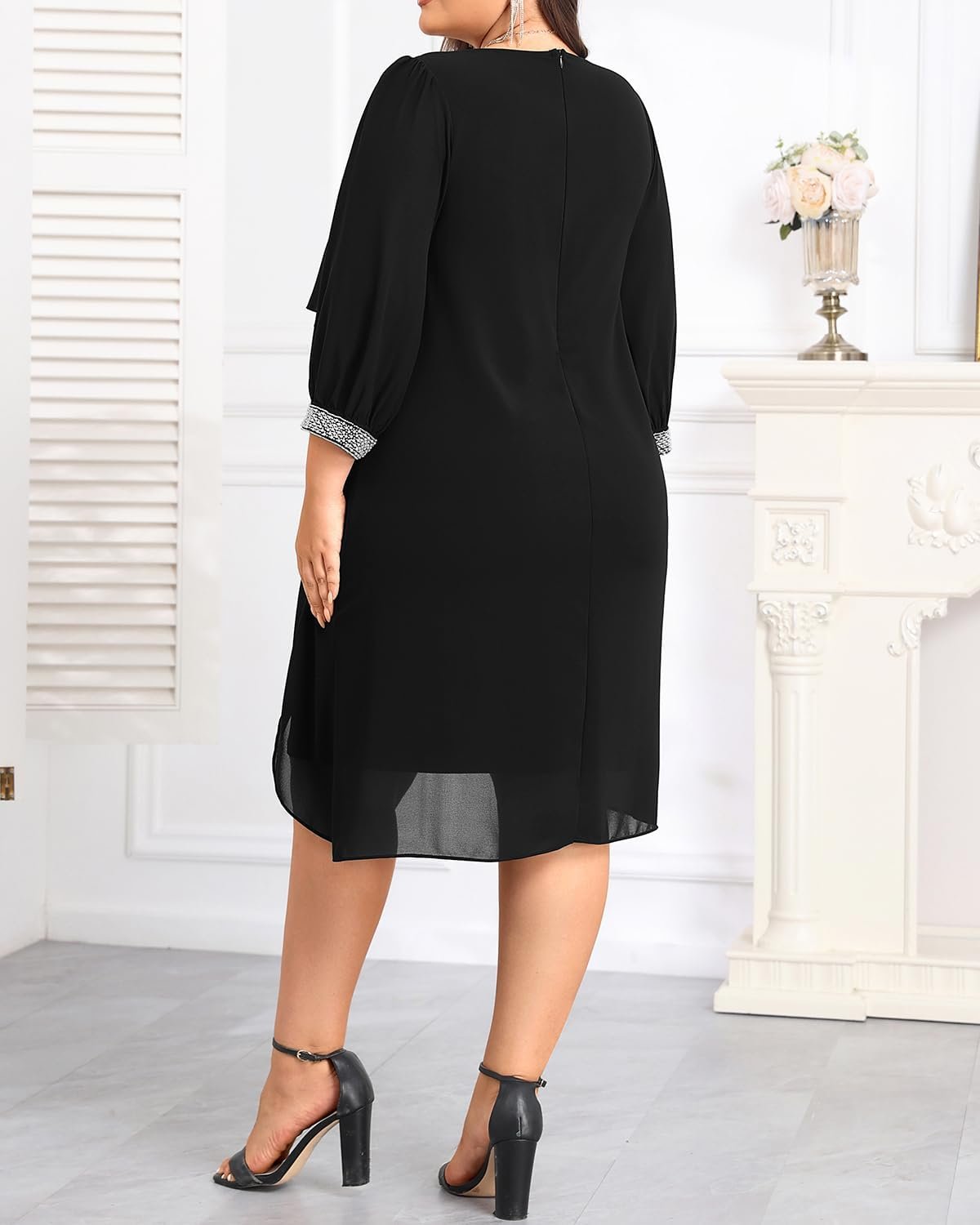 Plus Size Glitter Knee Length Cape Dress for Curvy Women plus size white dressplus size white dress