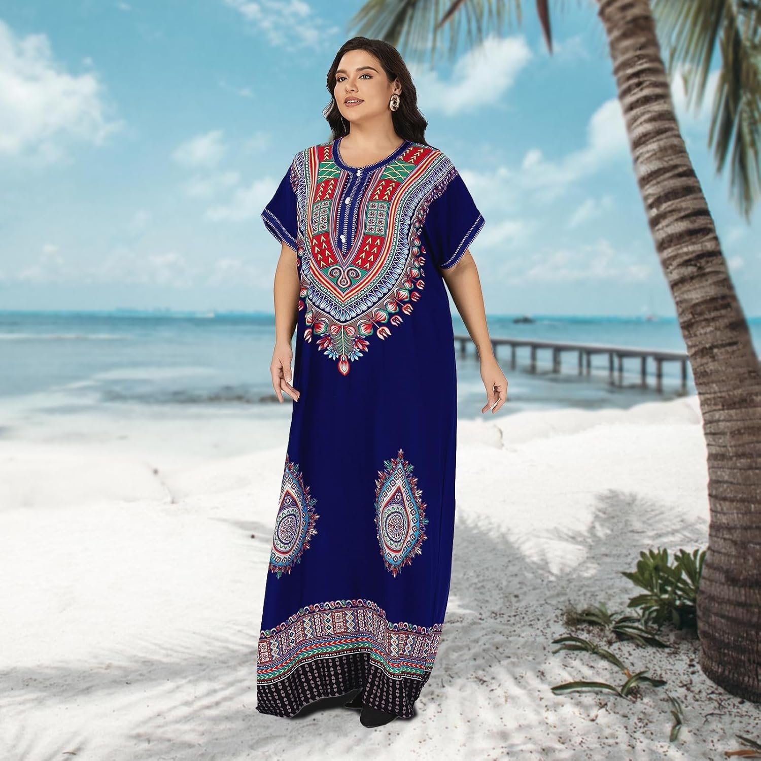 Plus Size Kaftan Dresses for Women Maxi Dress Embroidered Caftan Bathing Loungewear Cover up Suit Sundress