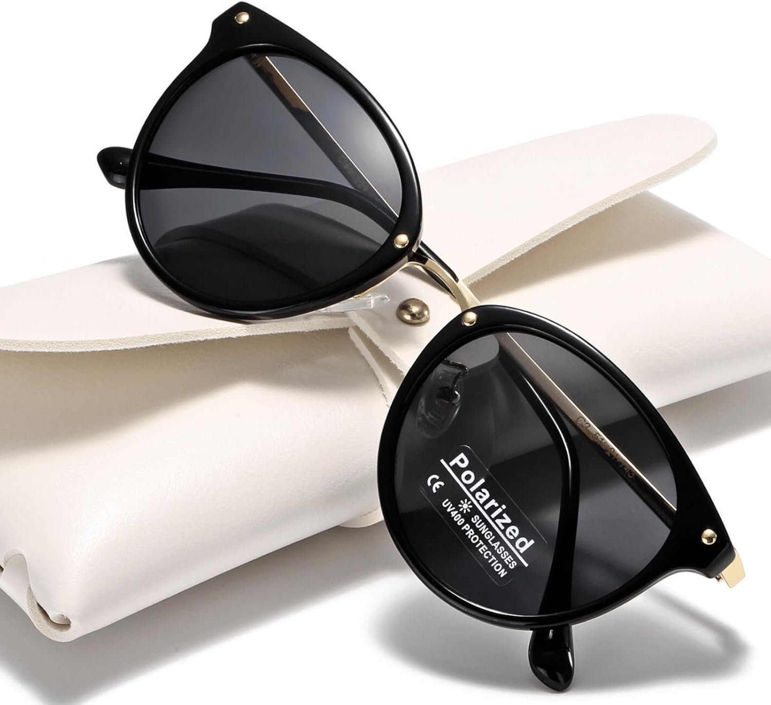 Polarized Sunglasses Womens Elegant UV400 Protection Black Classic Metal Style Ultralight Shades For Driving