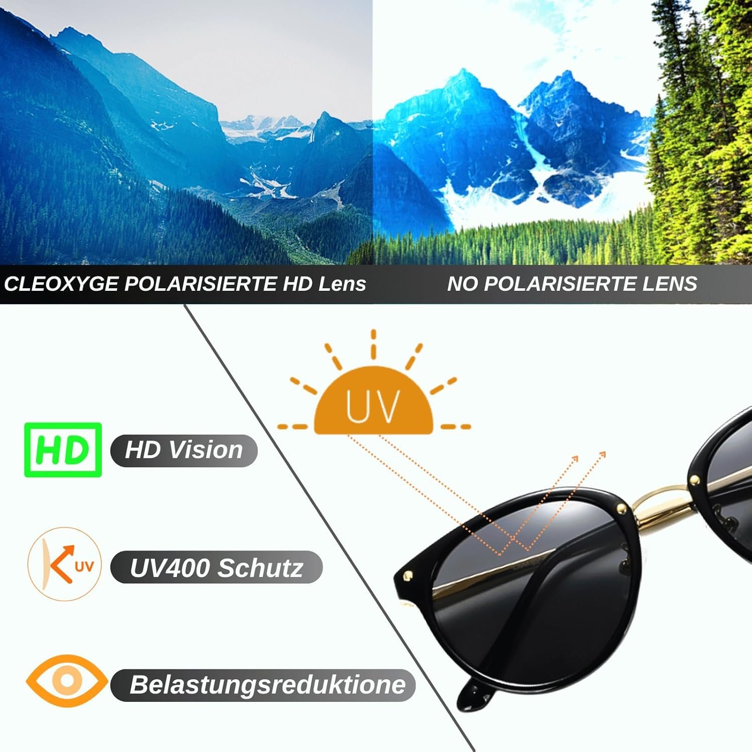 >【TAC lenses】 Cleoxyge sunglasses lens are made of TAC materials, which are durable and scratch-resistant. Perfect for summer: Whether you are on the beach or just outdoors, our sunglasses are the perfect accessory for your summer look.
