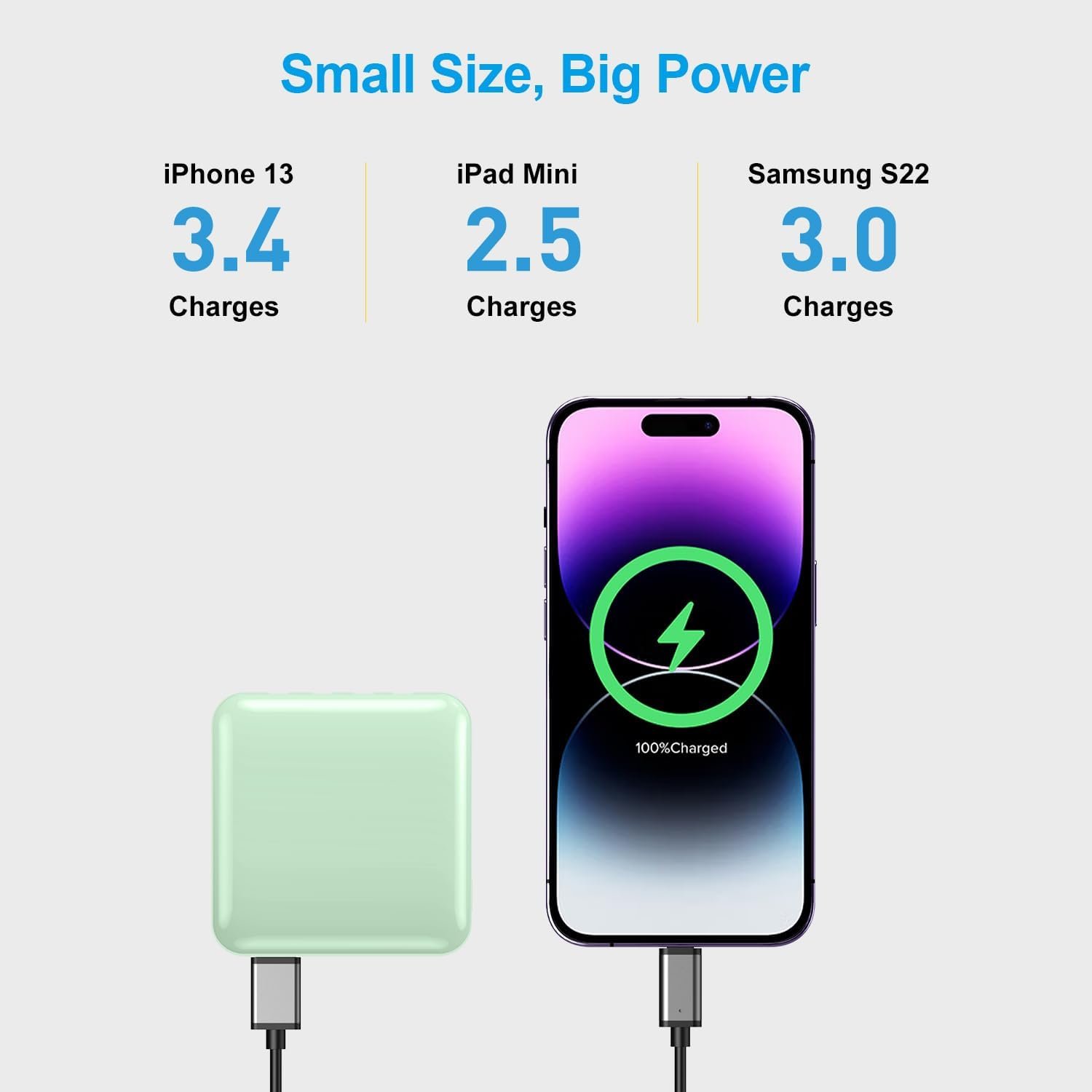 Customers find the power bank works well with iPhones and Android devices, is convenient to carry in bags, and comes with all necessary cables. They appreciate its ease of use and consider it good value for money. However, the size receives mixed feedback, with some finding it compact while others say it’s not small at all. Moreover, the charge rate and battery life get mixed reviews – while some say it charges devices quickly, others report it stops after 5-10 minutes, and while some say the battery life is great, others mention it doesn’t last all day at work.