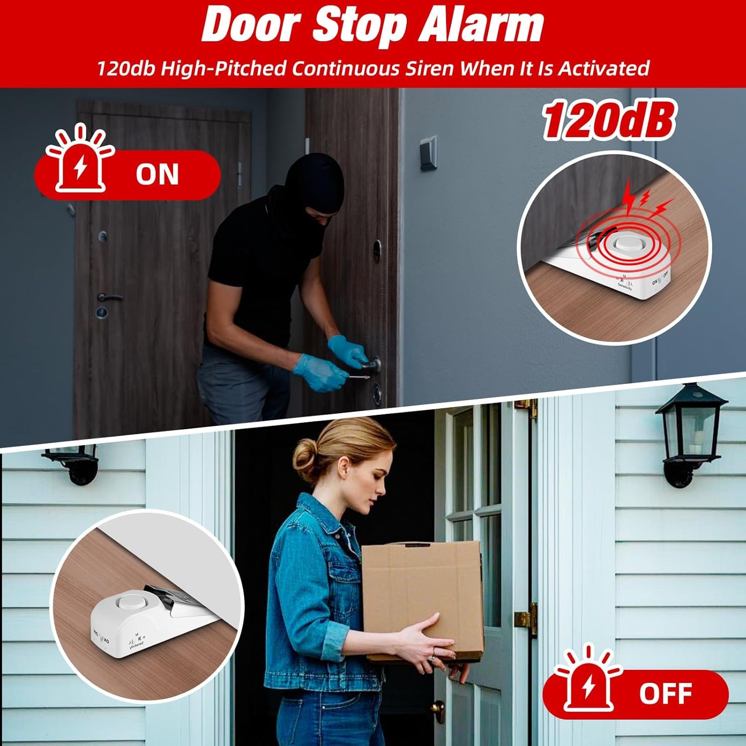 【Door Stop Alarm】In the “ON” state, once someone tries to break in, the security door stopper will block and issue a loud 120 decibel alarm (volume cannot be adjusted) to remind. The door stopper alarm can be used as a normal silicone base door wedge in the “OFF” state. The anti-slip design makes it difficult for the door to be pushed open, maximizing your safety.