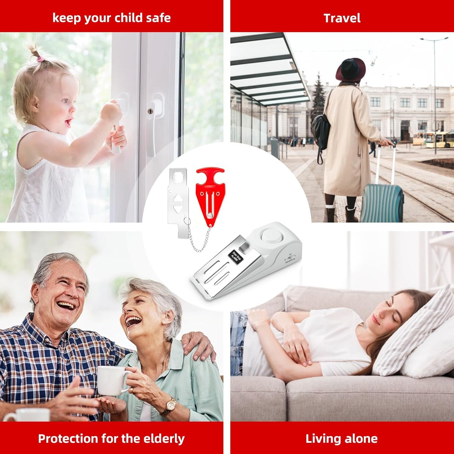 【Multiple Protection】Combined with electronic door stop with alarm and portable door lock, it provides all-round security protection to stop intruders and prevent illegal break-ins. Ensure your safety at home, hotel or during travel to prevent unauthorized entry.