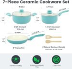 Pots and Pans Set, 7 Piece Nonstick Ceramic Cookware Set, Induction Kitchen Cookware Sets, Pots and Pans Non Stick with Stay Cool Handle, 100% PFOA Free, Turquoise