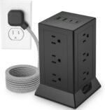This surge protector power strip tower helps you save more desktop space compact design tower power strip takes up little space on your desk, cleans various cords and makes your desktop tidy.