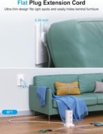 Flat Plug Power Strip & 6 FT Extension Cord: With a mere 0.30-inch ultra-thin flat-head plug design, this power strip sits flush against the wall and effortlessly fits into tight spaces behind sofas, nightstands, bookshelves, and headboards. The 45° right angle design creates an extra space for other plugs below without blocking. With a 6 FT extension cord that’s long enough to give you the freedom to use it anywhere – homes, offices, or college dorm rooms