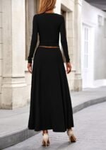 PRETTYGARDEN Women’s 2 Piece Outfits Long Sleeve Crop Top Maxi Skirts Sets