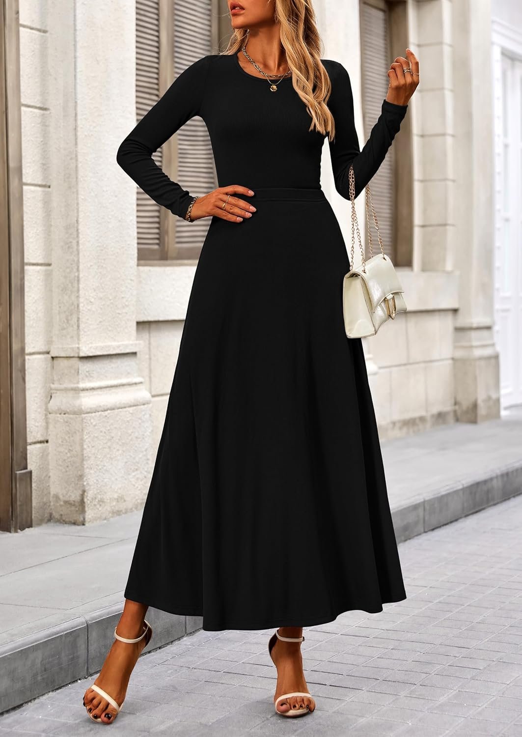 PRETTYGARDEN Women’s 2 Piece Outfits Dressy Casual Ribbed Knit Long Sleeve Crop Tops Maxi Flowy Skirts Matching Sets