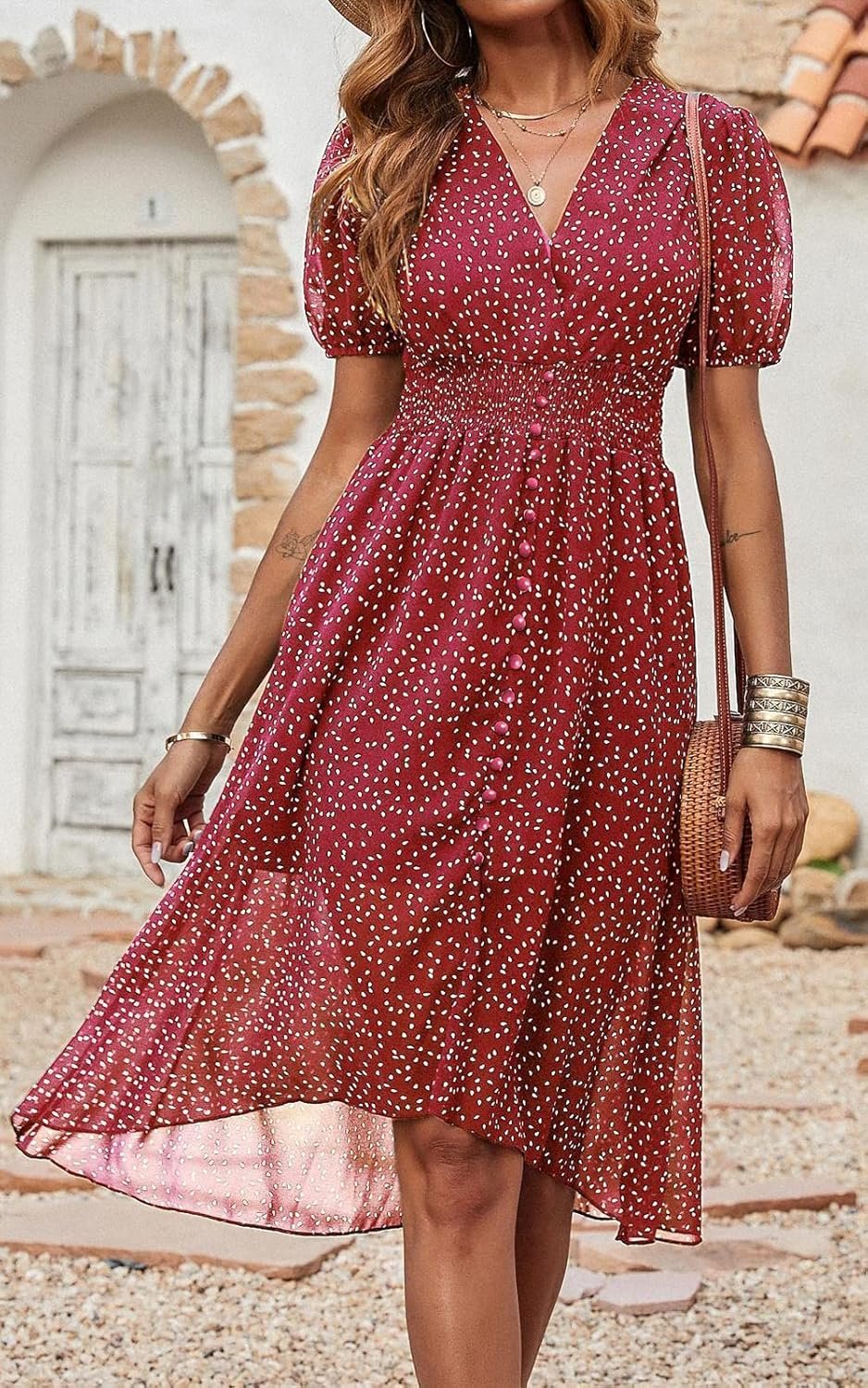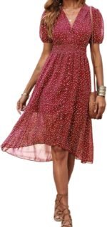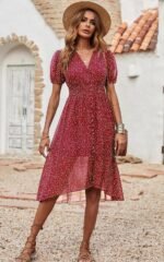 Wrap V Neck Sun Dresses for Women Casual Dresses for Women 2025 Trendy Dress floral summer wedding guest dresses for women 2024 midi dresses puff sleeve casual maternity dressfloral summer wedding guest dresses for women 2024 midi dresses puff sleeve casual maternity dress