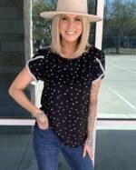 Petal Sleeve Is The Most Attractive Design Of This Casual BlouseTrendy Solid Color Shirt For Women To Creat Classic Look In SummerClassic Round Neck Easy To Wear And Take OffSoft And Lightweight Polyester Fabric Suit For Spring Summer