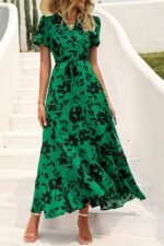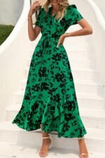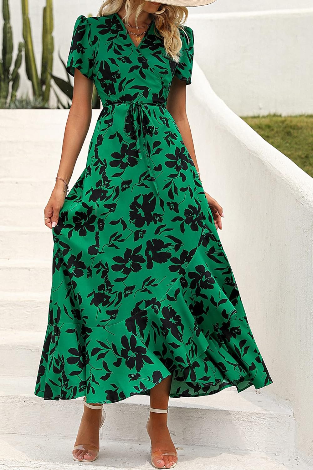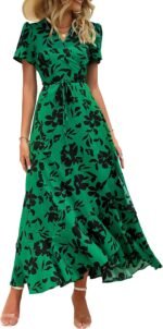 PRETTYGARDEN Women’s Summer Maxi Dress Casual Wrap Floral Boho Short Sleeve V Neck Split Ruffle Beach Long Dresses
