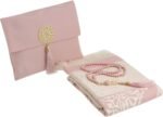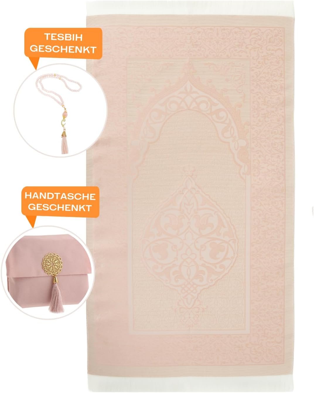 Prien Muslim Prayer Rug with Tasbih and Portable Bag, Muslim Gift for Women Men, Mubarak Islamic Box, Soft Mat Islam Gifts Set, Turkish Sajadah for Ramadan, Eid, Hajj, Travel, Pray (Powder Pink)
