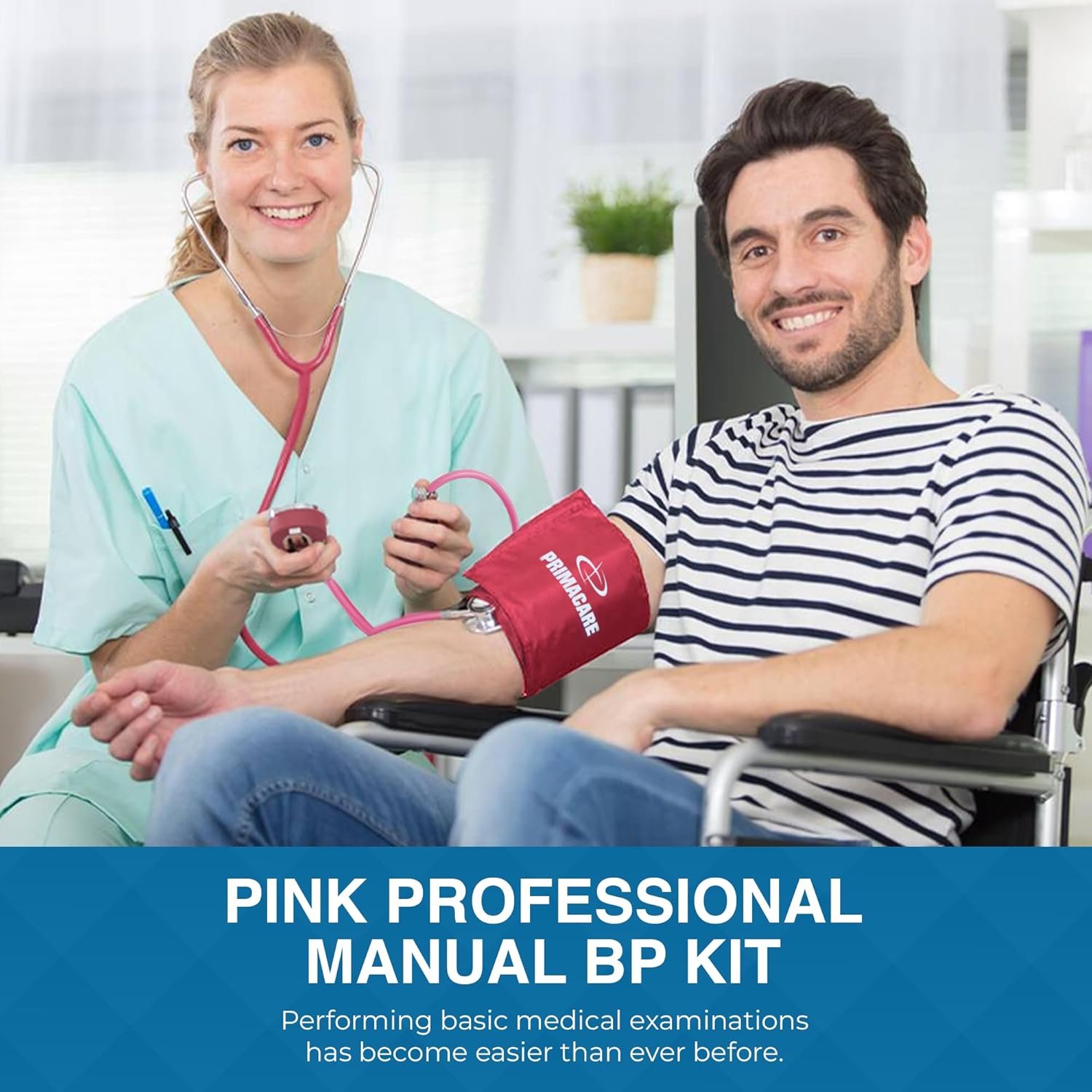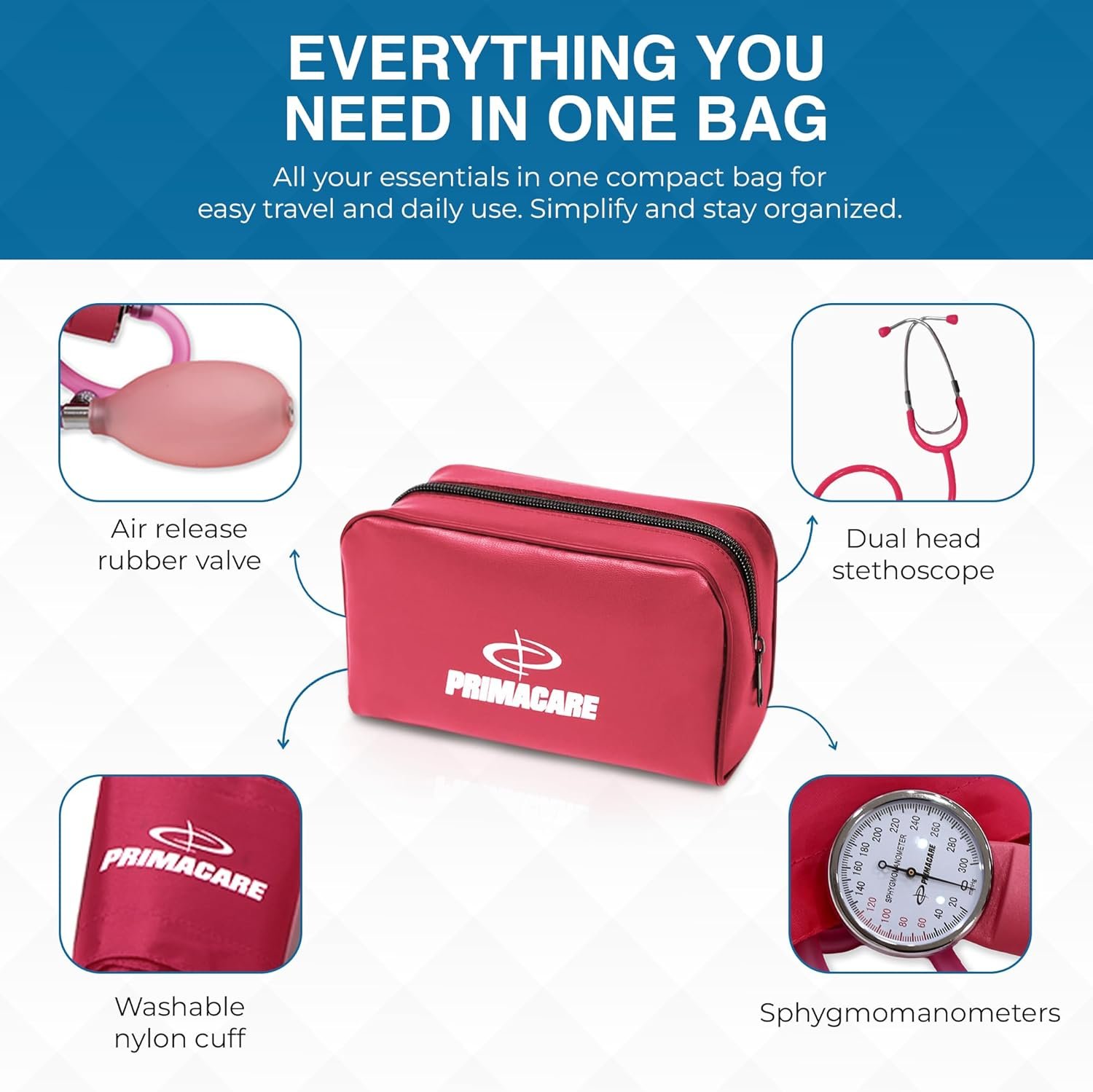 PrimaCare Medical DS-9197-PK Professional Classic Series Manual Adult Size Blood Pressure Kit, Emergency Bp kit with Stethoscope and Portable Leatherette Case, Nylon Cuff, Pink