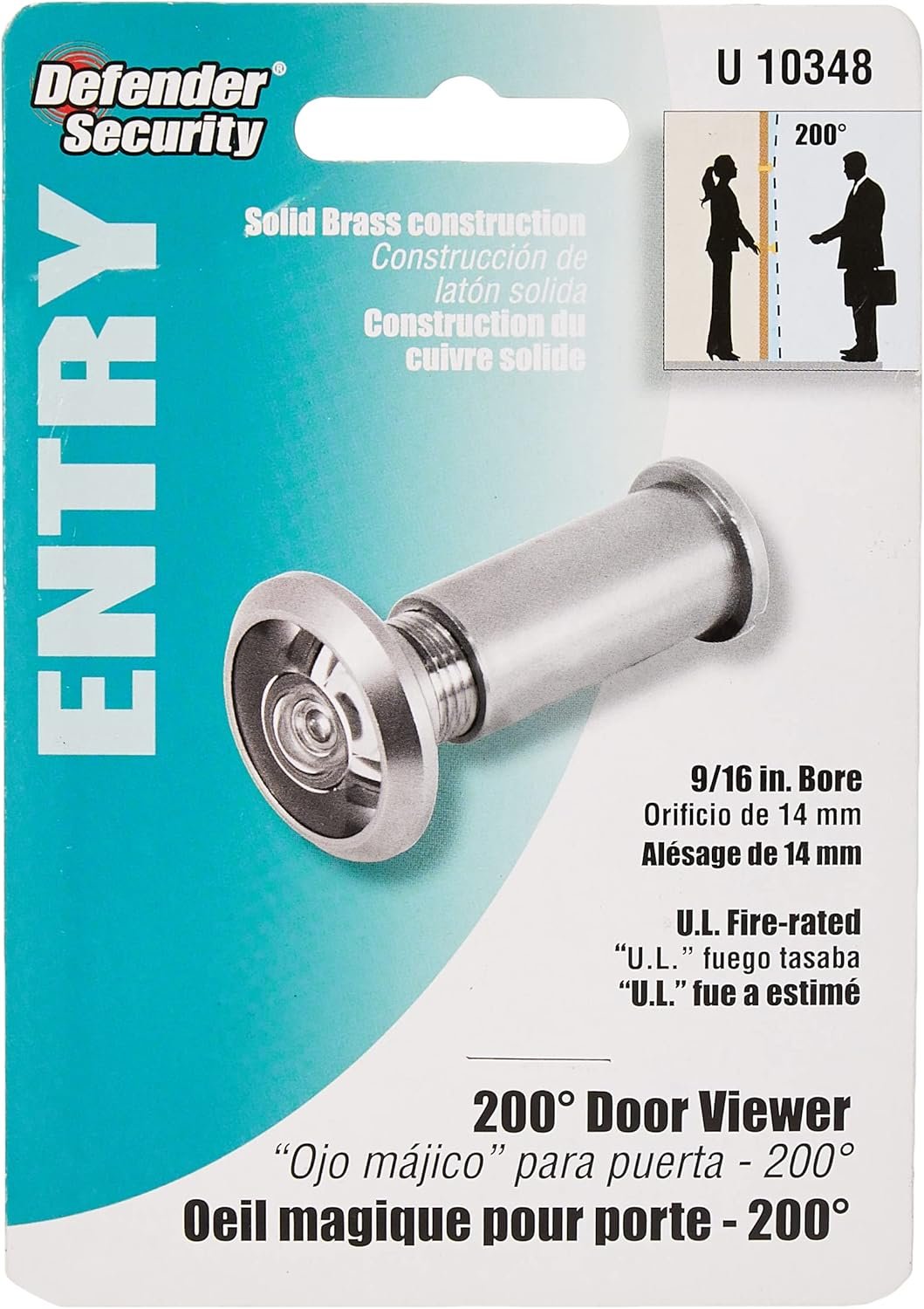 This U.L. Listed door viewer is constructed of a solid brass housing, and it comes in a satin nickel plated finish. The lens of this viewer is made of glass and it features a 200 degree angle of view. Viewer can be installed on doors from 1-3/8 inch thick to 2-1/8 inch thick, with a required 9/16 inch diameter hole for installation of viewer. Door viewer is designed to help keep you safe when answering your door and is ideal for day or night viewing with adequate exterior lighting. Easy to install and it is used by many. Inside viewer covers (not included with this item) prevent reversed visibility through door viewers from the exterior of the home, increasing the security and privacy of your home.