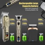 【UPGRADE ACCESSORIES】 The LQT clippers for men equipped with 4 guide combs(,3,6,10,13,mm) ,The T-blade trimmer equipped with 4 guide combs (1.5,2,3,4,mm),a barber cape,3 cleaning brush, 3 USB charging cables,a barber’s comb, Suitable for both professional in a salon or barbershop and home hair cuts as well as beard trimming.