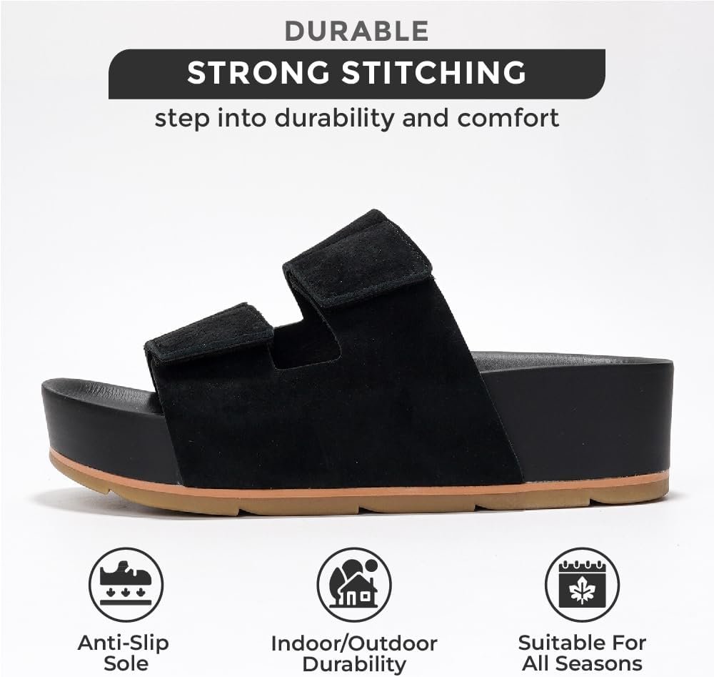 Project Cloud Genuine Leather Platform Sandals Women Footwear – Memory Foam Insole Comfortable Beach Summer Wedges – Non Slip & Lightweight Wedge Sandals for Women 2025 (Pismo)