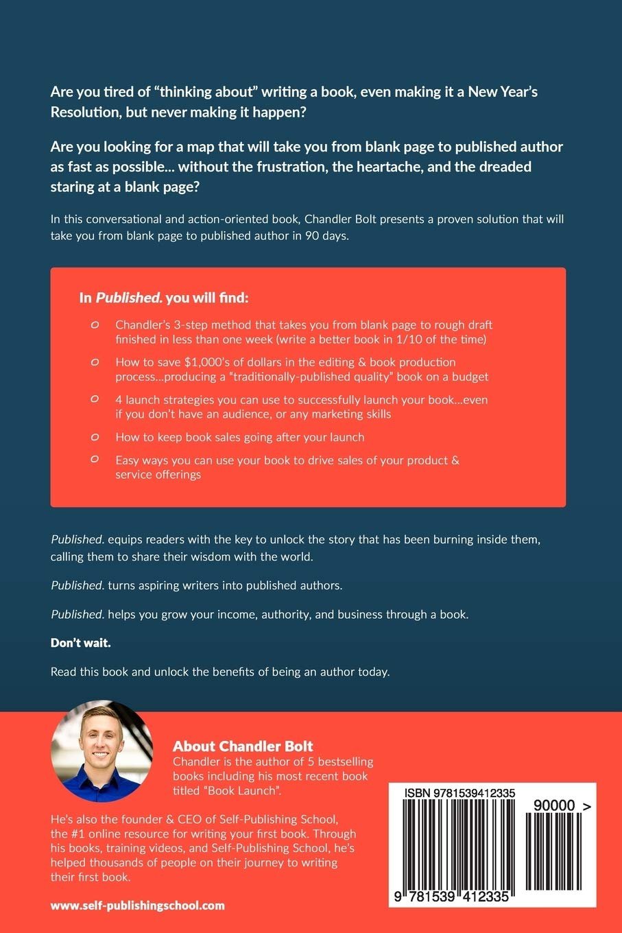 In this conversational and action-oriented book, Chandler Bolt presents a proven solution that will take from blank page to published author in 90 days.