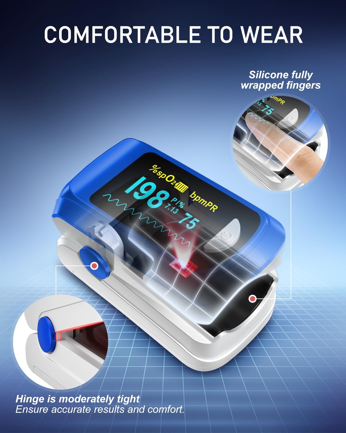 Pulse Oximeter Fingertip Oxygen Monitor Fingertip Pulse Ox Heart Rate and SpO2 Finger Pulse Oximeter for SpO2/Heart Rate/Perfusion Index Blood Oxygen Saturation Monitor with Battery Lanyard (Blue)