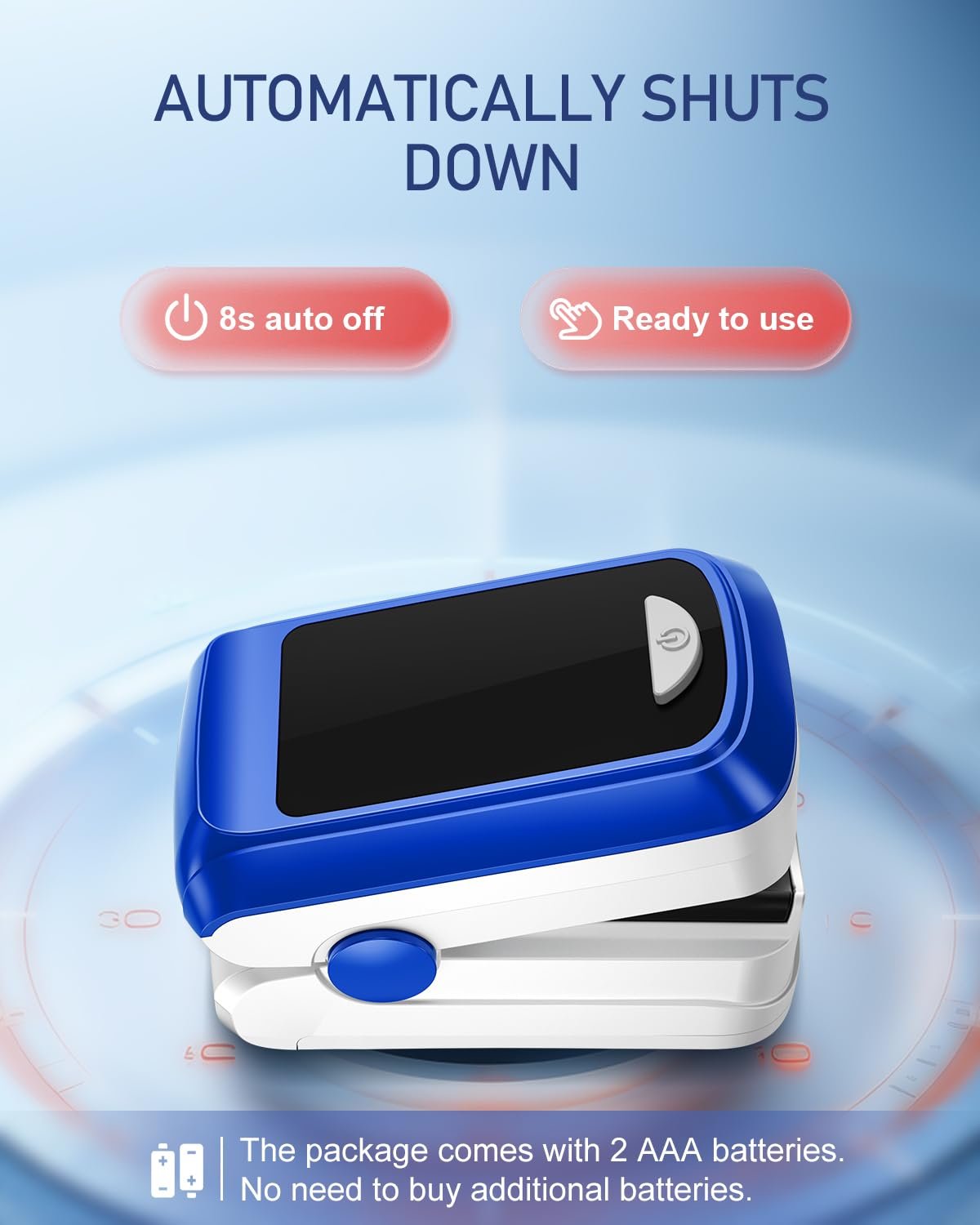 Package Includes:1 x fingertip pulse oximeter, include 2X AAA batteries that will allow you to use the blood oxygen meter finger right out of the box for convenience, 1 x lanyard, 1 x user manual.
