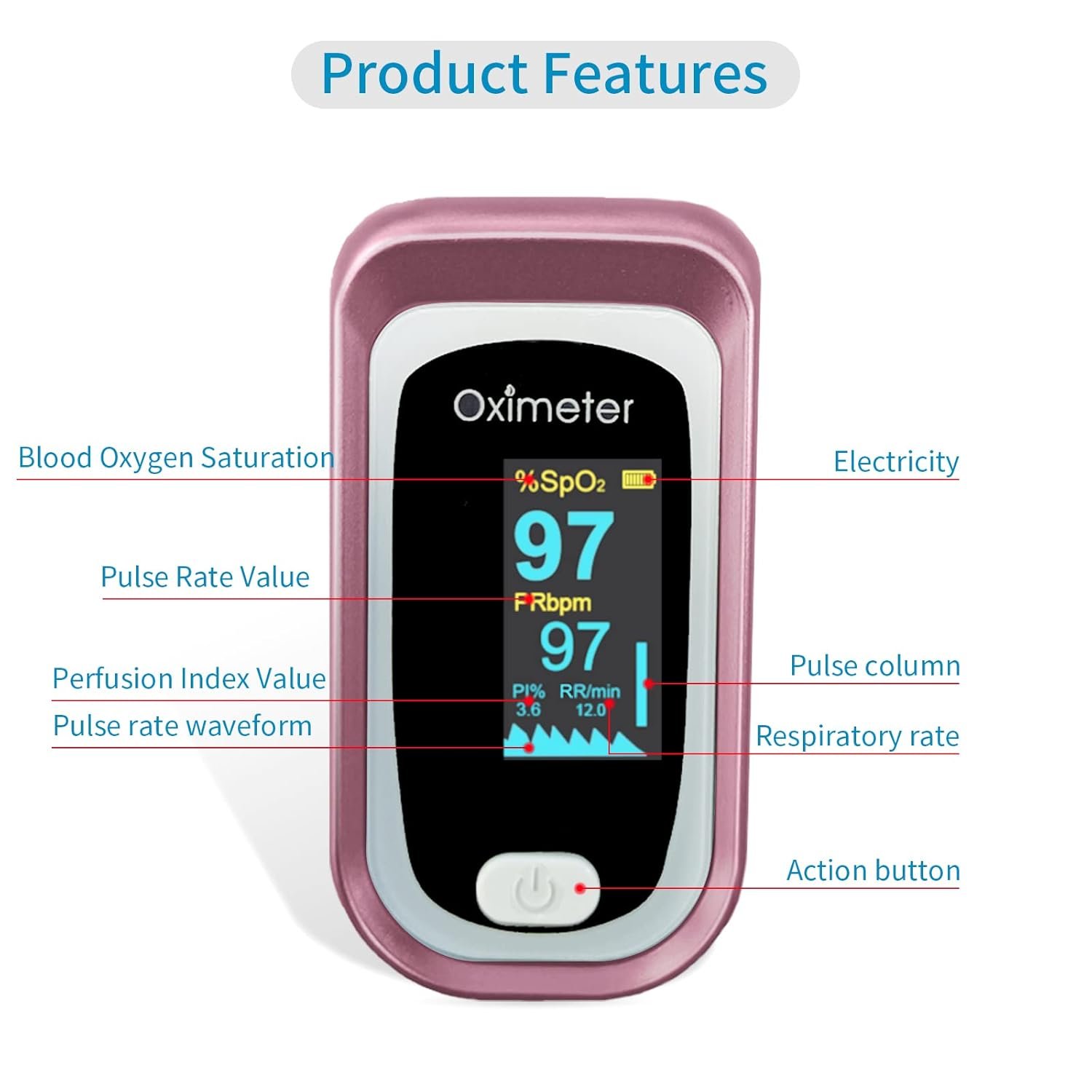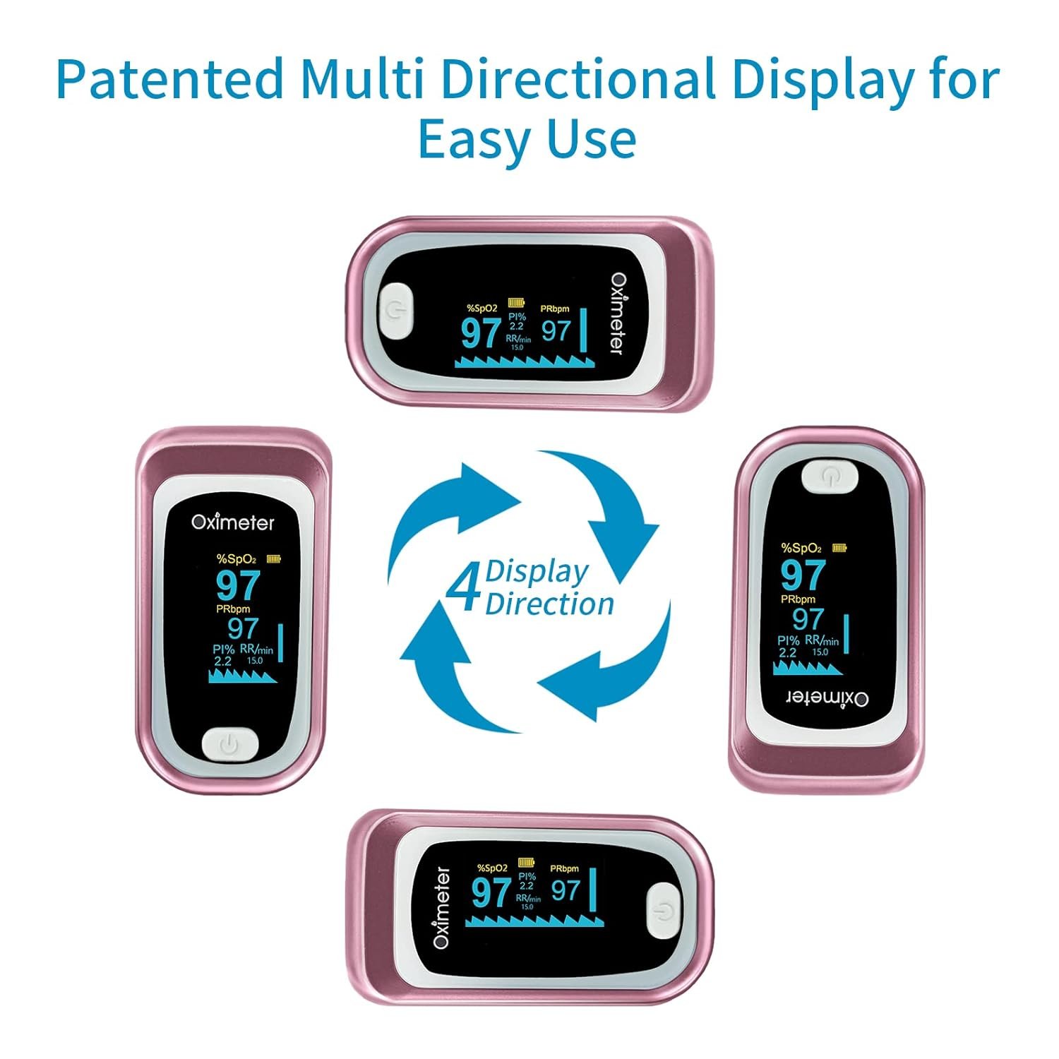 Pulse Oximeter Fingertip,Blood Oxygen Saturation Monitor,Spo2 Pulse Oxygen Saturation Pulse Monitor OLED Screen PI and Respiratory Rate (RR) monitoring, rose gold,