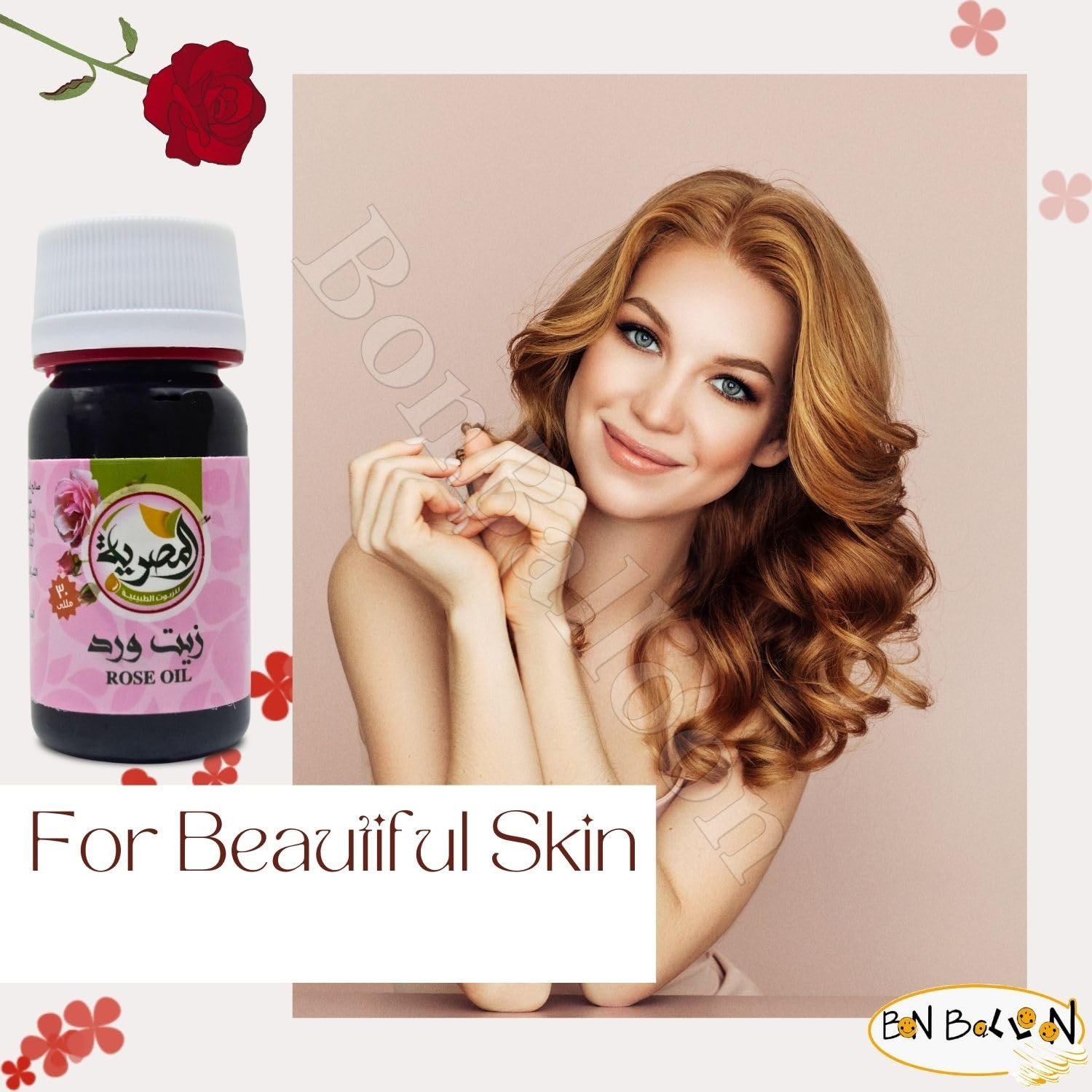 Pure & Natural Arabian Rose Oil Cold Pressed El Masrya Natural Concentrated Crude Perfect Fresh For Body & Hair & Skin No Additives Non Gmo Kosher Halal (1 Pack = 1 oz / 30 ml) زيت الورد المصرية