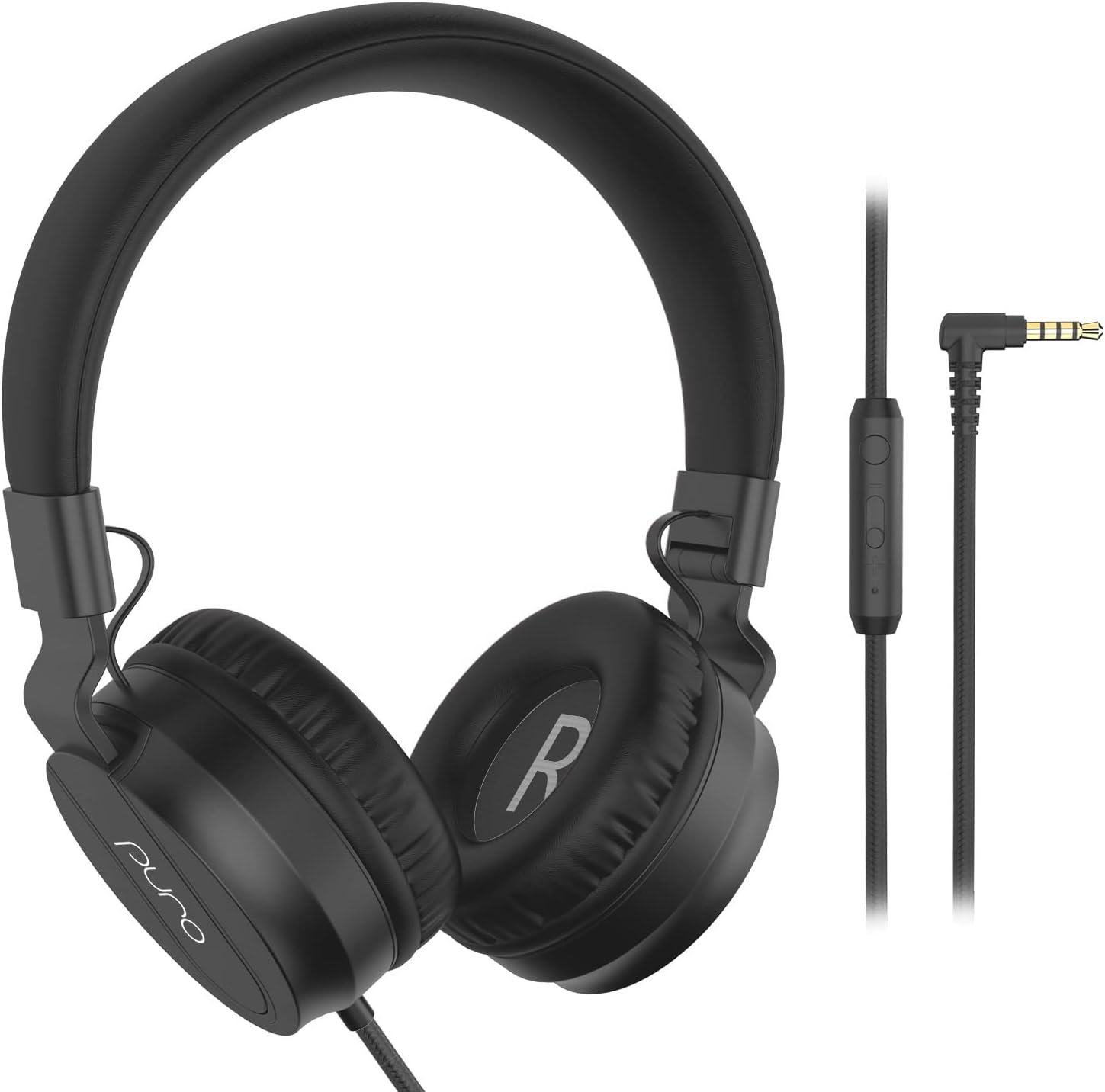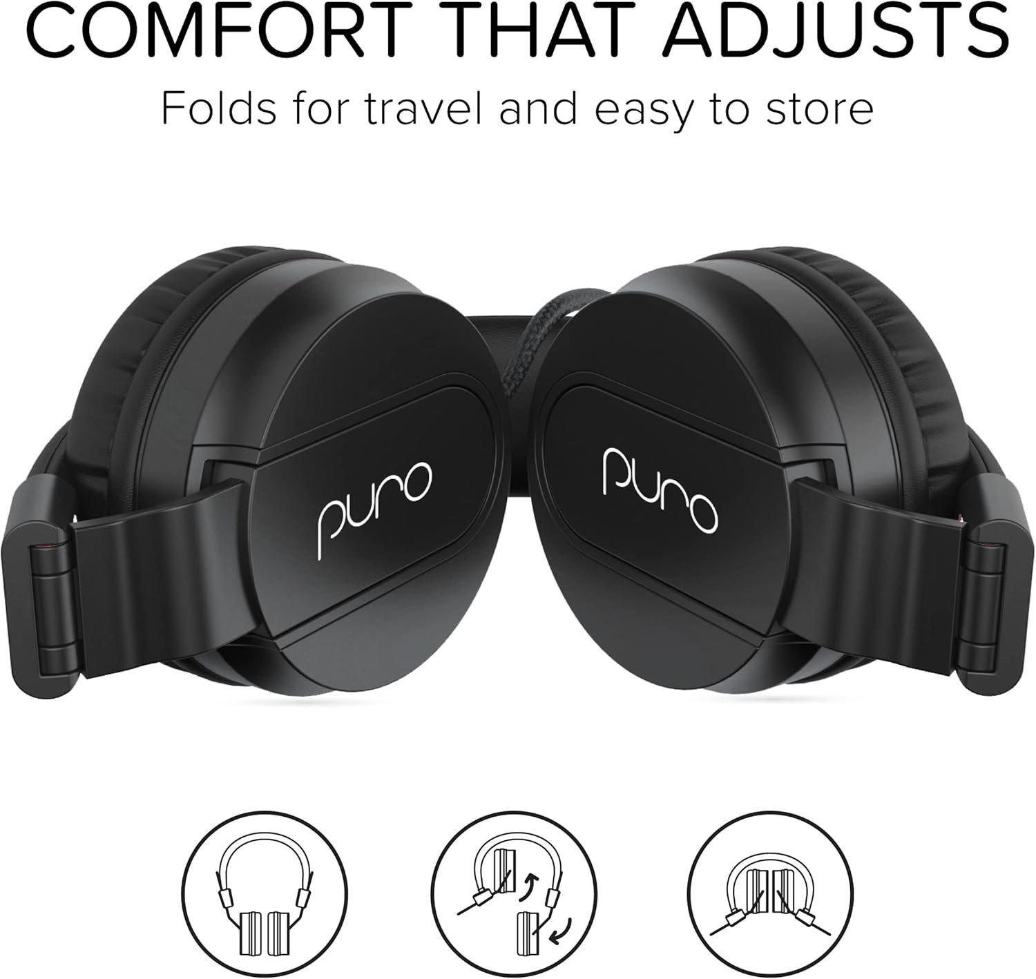 Puro Sound Labs PuroBasic Volume Limiting Wired Headphones for Kids, Foldable & Adjustable Headband w/Microphone, Compatible with Smartphones, Tablets and PC’s – Black