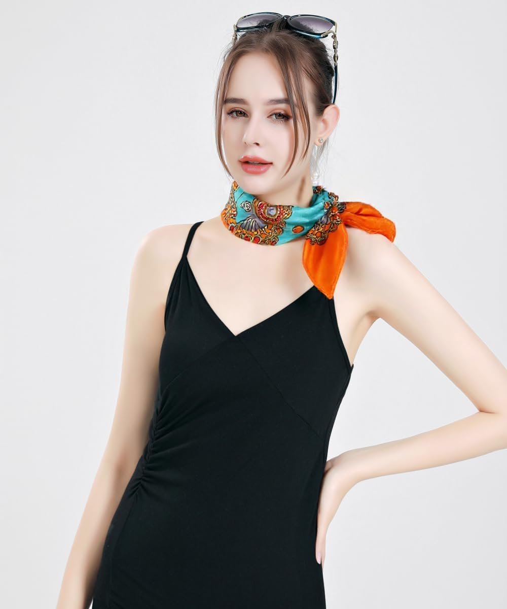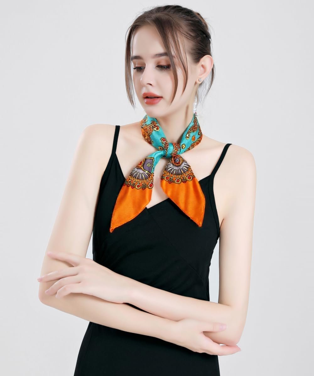 QBSM Womens 23.6 inch Satin Silk Feeling Formal Square Neck Scarf Head Hair Wraps Kerchief