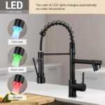 Customers find the kitchen faucet visually appealing, with one mentioning it matches their black appliances beautifully, and they appreciate its ease of installation, with one noting it took about 20 minutes to set up. The faucet receives positive feedback for its quality, water pressure, and value for money. However, the functionality and durability receive mixed reviews – while some say it works well and feels solid, others report issues with the temperature LED light failing and the faucet breaking after two weeks of use. Additionally, customers report leakage problems, with the nozzle part dripping water and the sprayer handle lever springing leaks.