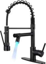 Qomolangma Commercial Kitchen Sink Faucet with Pull Down Sprayer, Modern Single Handle Kitchen Faucets with LED Light, Matte Black