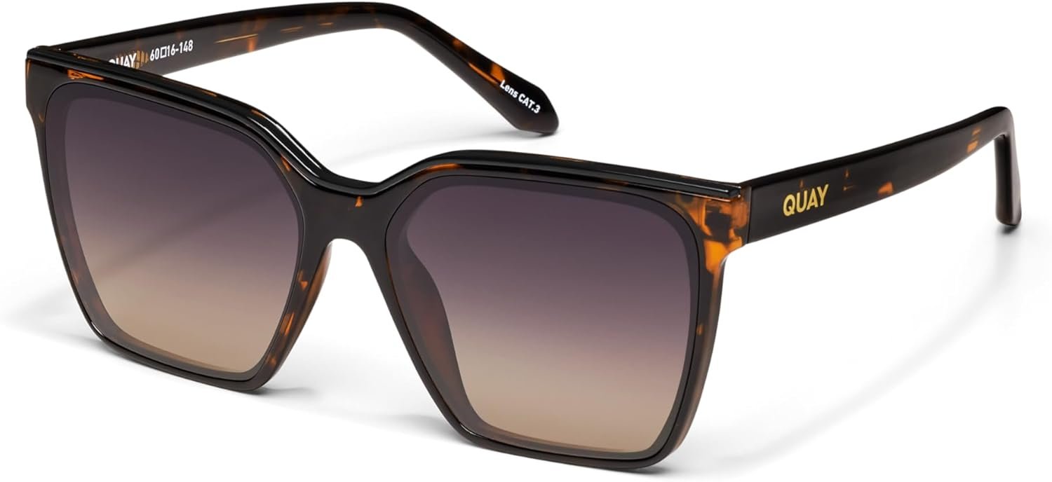 Quay – Womens Sunglasses, Polarized Square Lenses with UV Protection, Oversized Sunglasses (Level Up, Tortoise Gold)