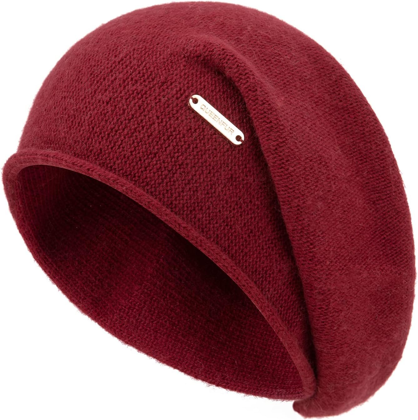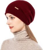 QUEENFUR Knit Slouchy Beanie Hats for Women Cashmere Ski Cap Knitted Wool Soft Warm Winter Hat