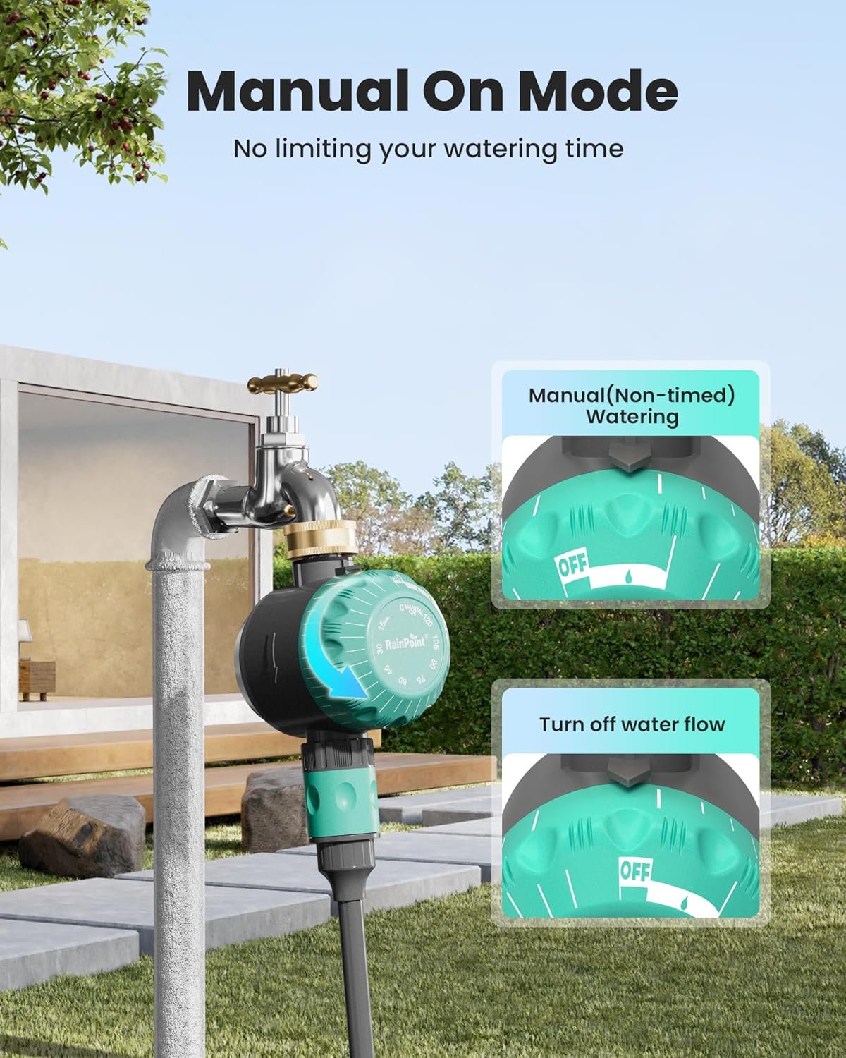 2 Watering Mode: Timed watering for up to 120 minutes, plus unlimited manual watering, let you water the lawn, garden, pool with ease.