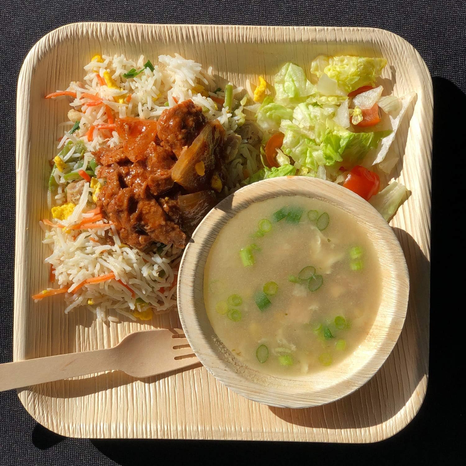 𝐒𝐓𝐑𝐎𝐍𝐆 𝐀𝐍𝐃 𝐒𝐓𝐔𝐑𝐃𝐘 – As the center portion of the leaf has the best texture and uniform thickness, these bowls are made from them, Palm leaf bowls can go with all sorts of food and they won’t crack or break. They are heat, grease, and puncture-resistant. They are sturdier than paper bowls and thick enough to hold food without getting soggy.