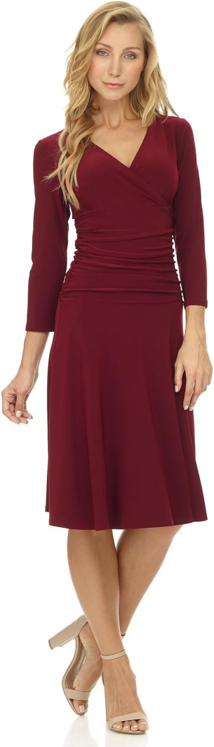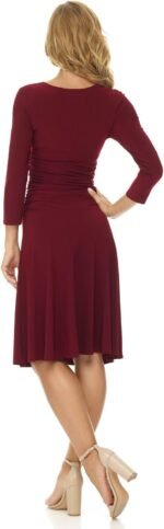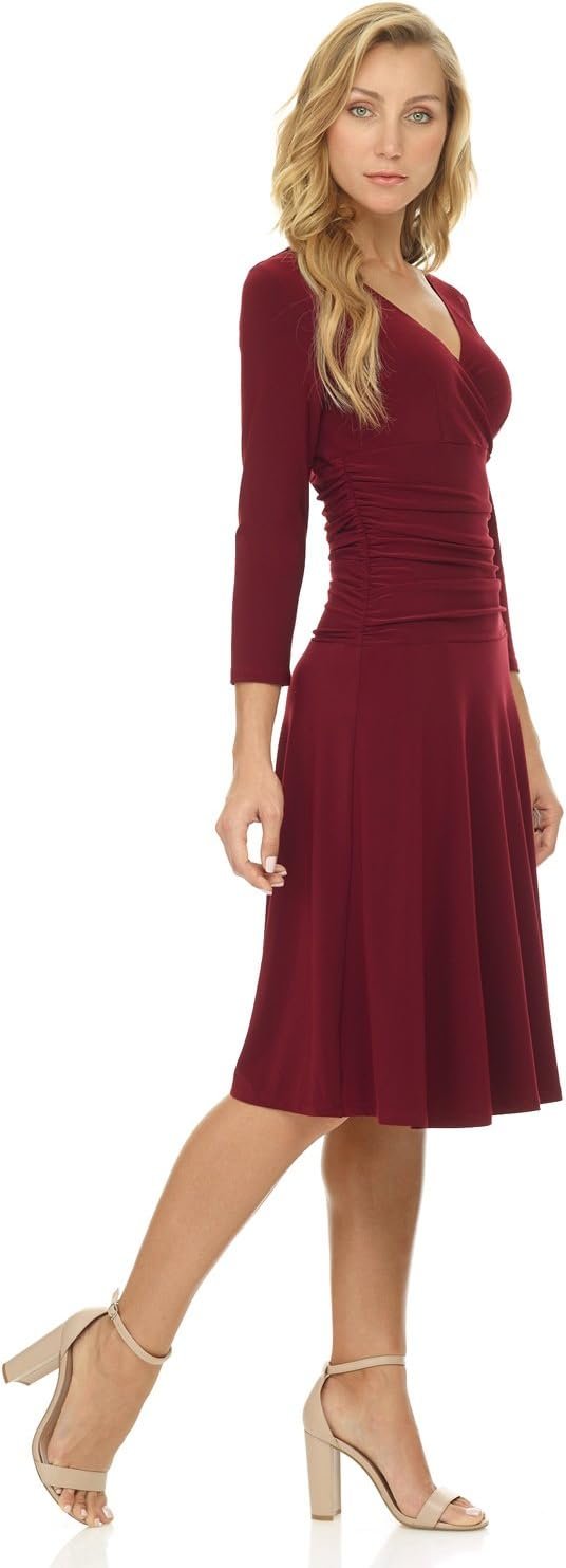 Rekucci Women’s Slimming 3/4 Sleeve Fit-and-Flare Crossover Tummy Control Dress