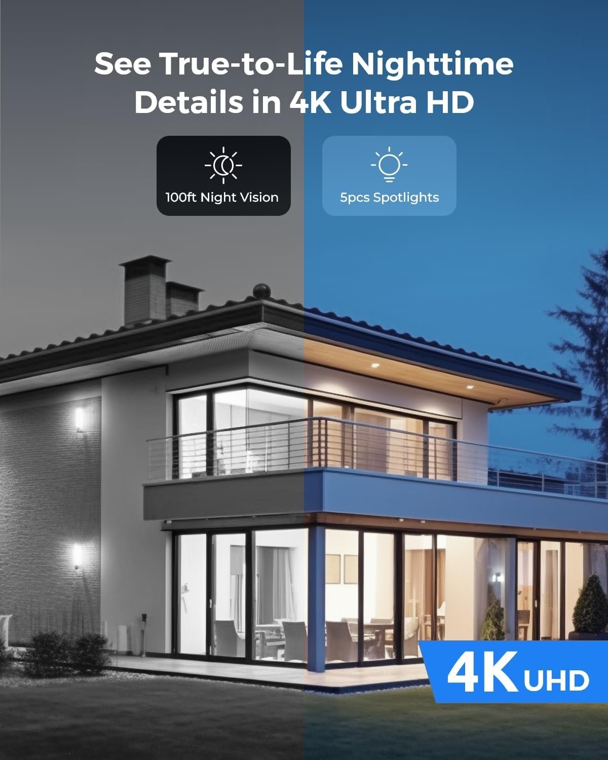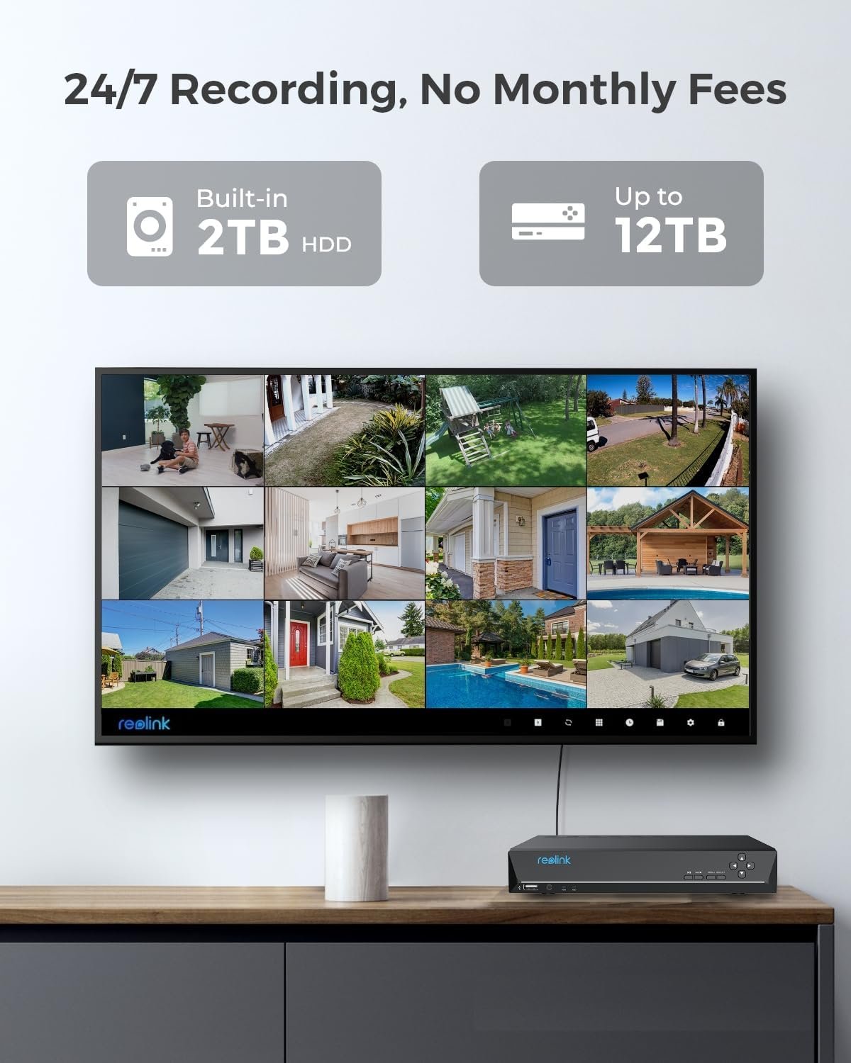 24/7 RECORDING & TWO-WAY TALK: This 4K security camera system Capture all motion events with the built-in 2TB HDD, expandable up to 12TB for ample storage. Engage in two-way talk and remote control functionalities, enabling real-time checks of your monitored area from anywhere, anytime.