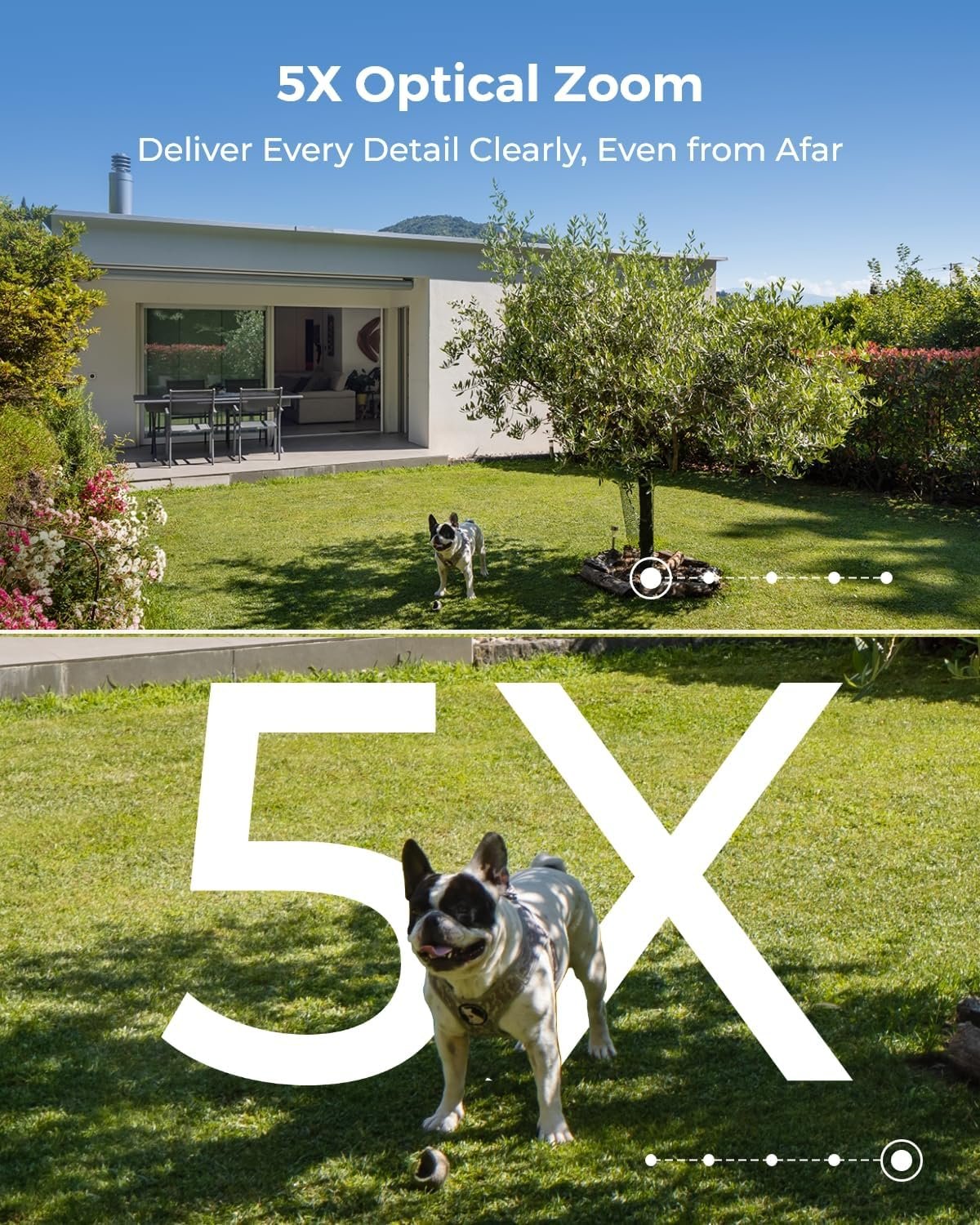 5X OPTICAL ZOOM & 128° WIDE VIEWING ANGLE: Unveil rich details over long distances with the 5X optical zoom capability—no compromise on image quality. The expansive 128° wide angle ensures comprehensive coverage, leaving no threat unnoticed.