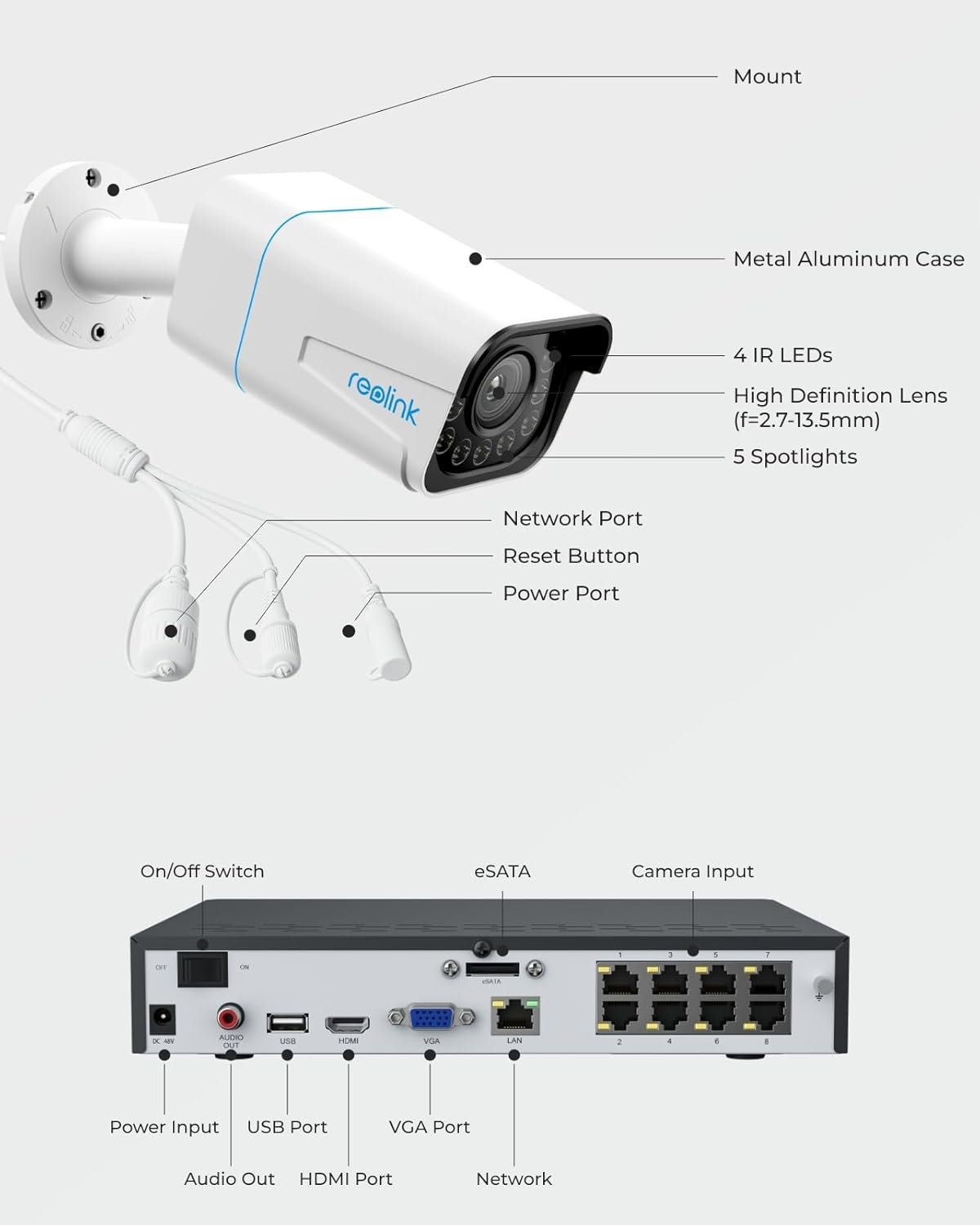 4K COLOR NIGHT VISION: Indulge in 4K 8MP ultra clarity with the Reolink RLK8-811B4 PoE security camera system. Experience stunning detail captured in every frame. With 5x powerful spotlights, the camera reveals vibrant and vivid night images with unparalleled clarity.