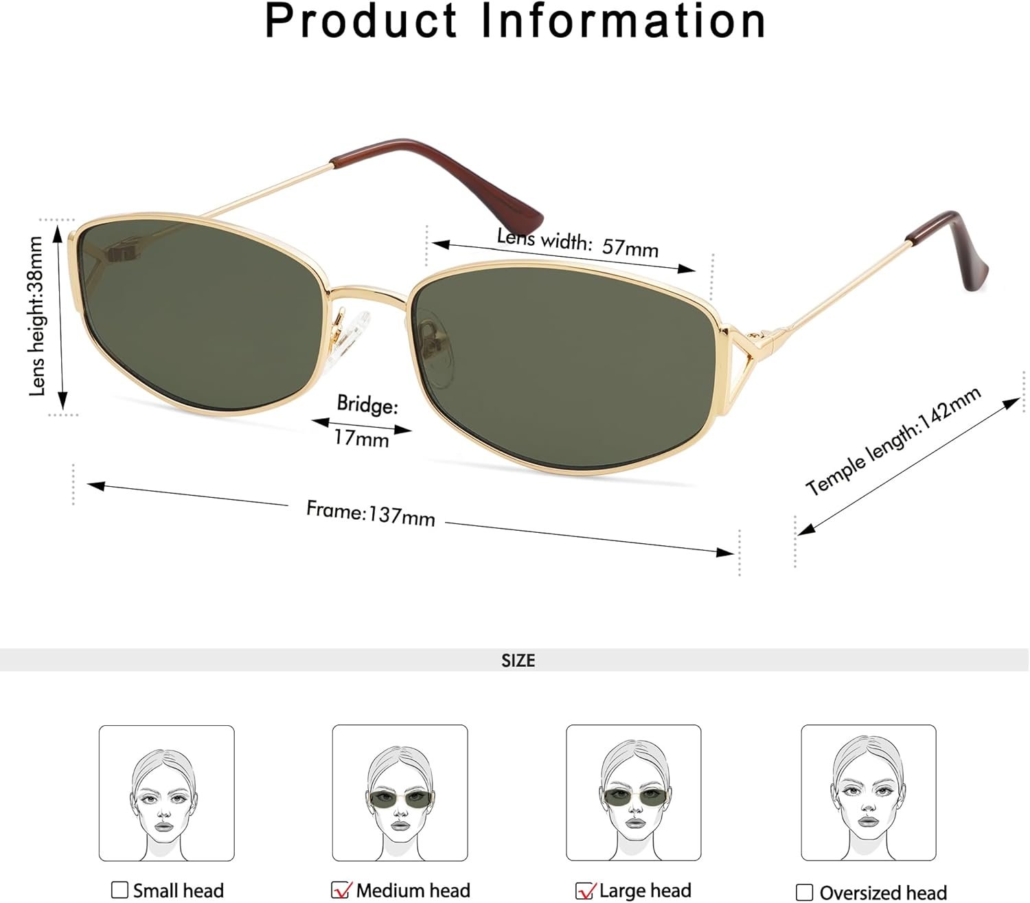Customers find these sunglasses chic and flattering on every face, with a cool shape that goes with every outfit. They are well-made, hold up well over time, and offer great value for the price. Customers find them comfortable and effective at protecting their eyes from the sun. The fit receives mixed feedback, with some customers saying they fit nicely while others find them too small.