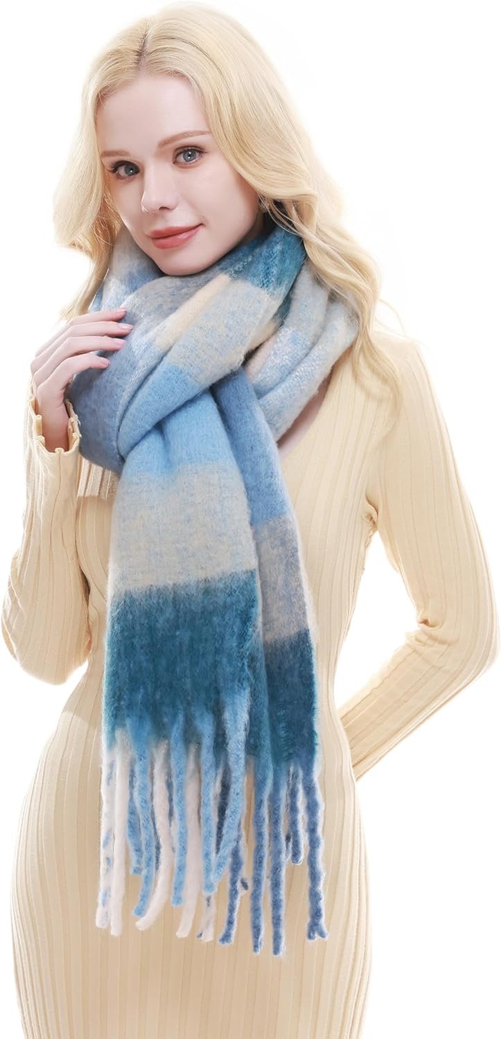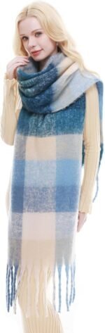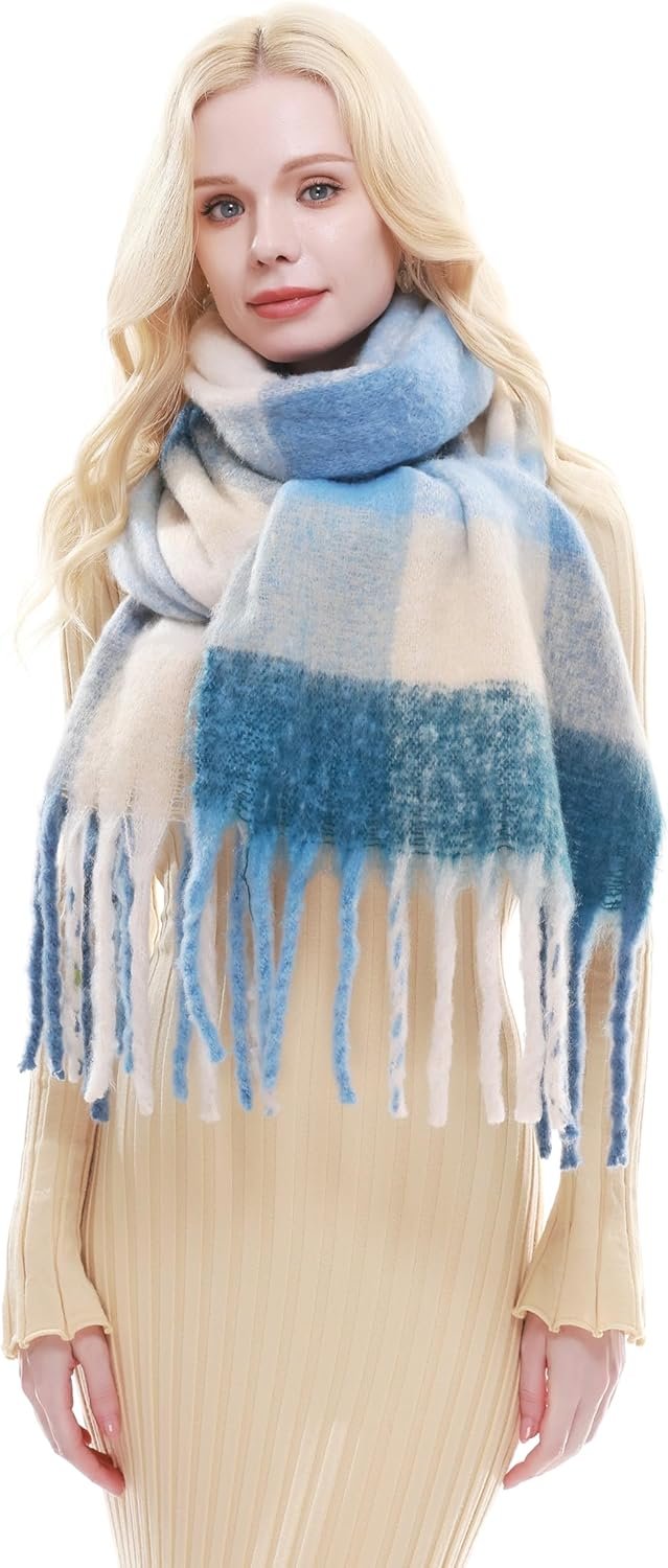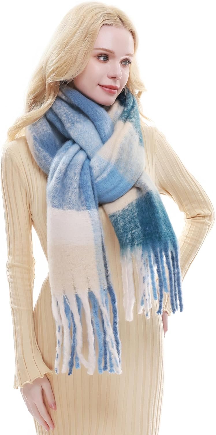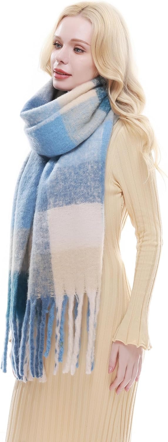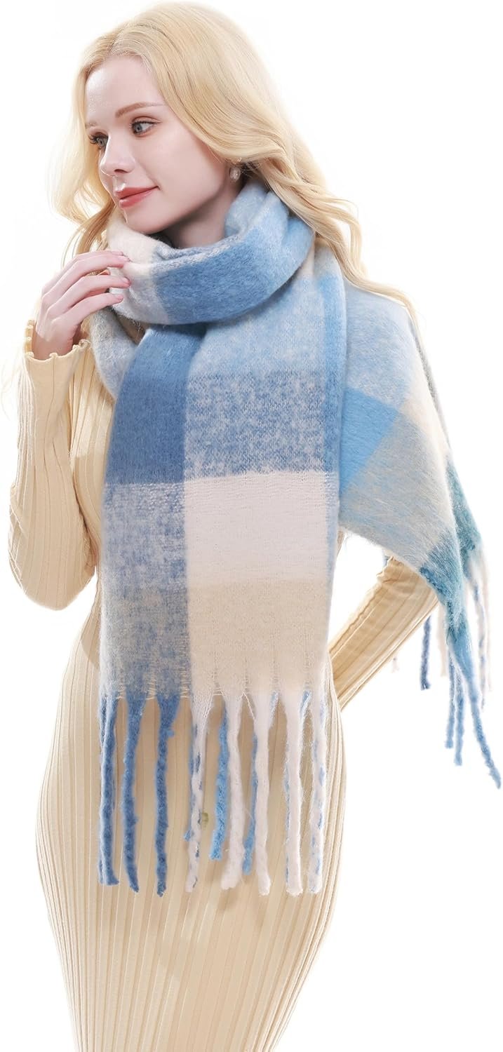 RIIQIICHY Plaid Scarf for Women Chunky Scarves Winter Warm Thick Oversized Blanket Scarf