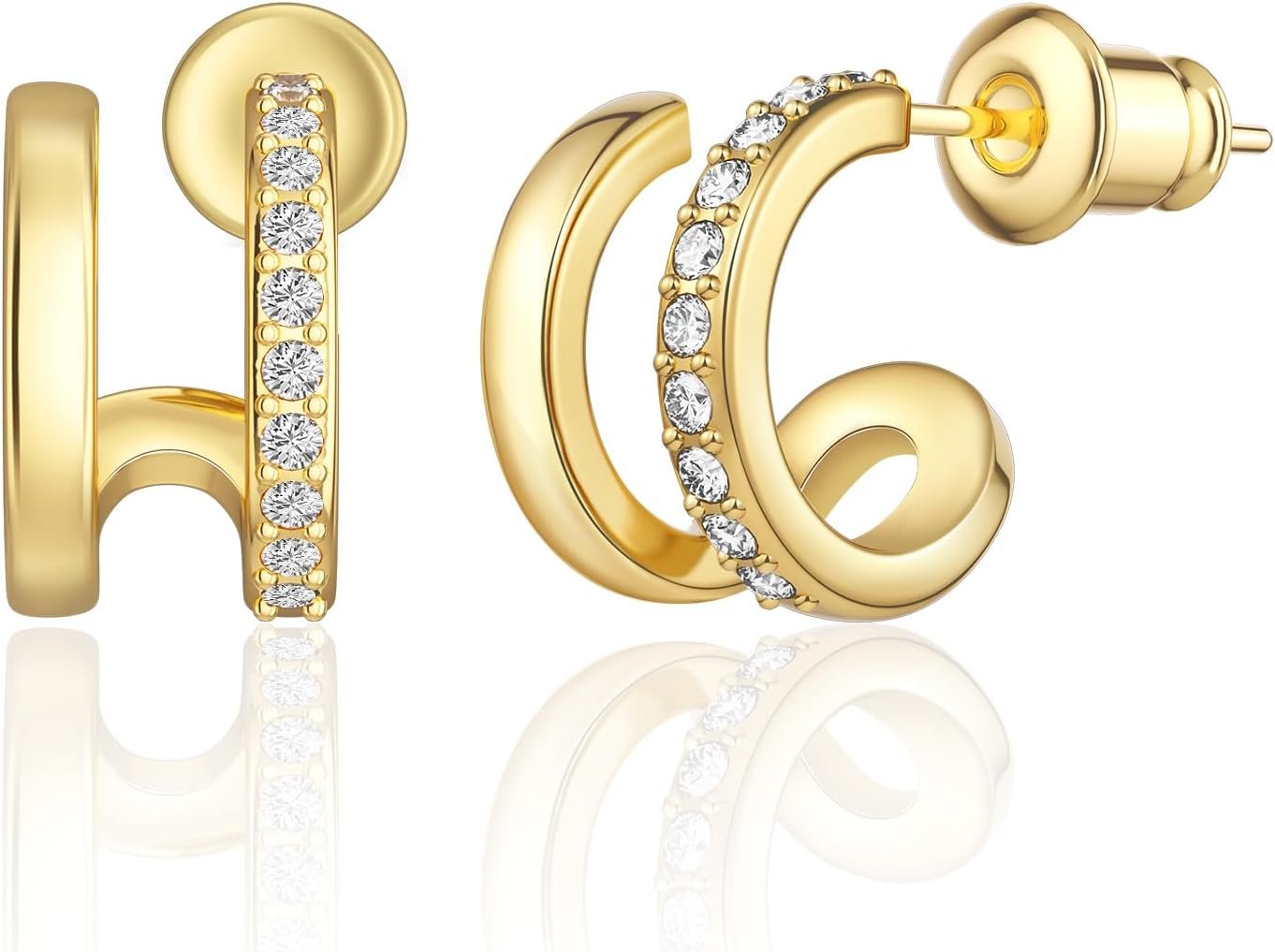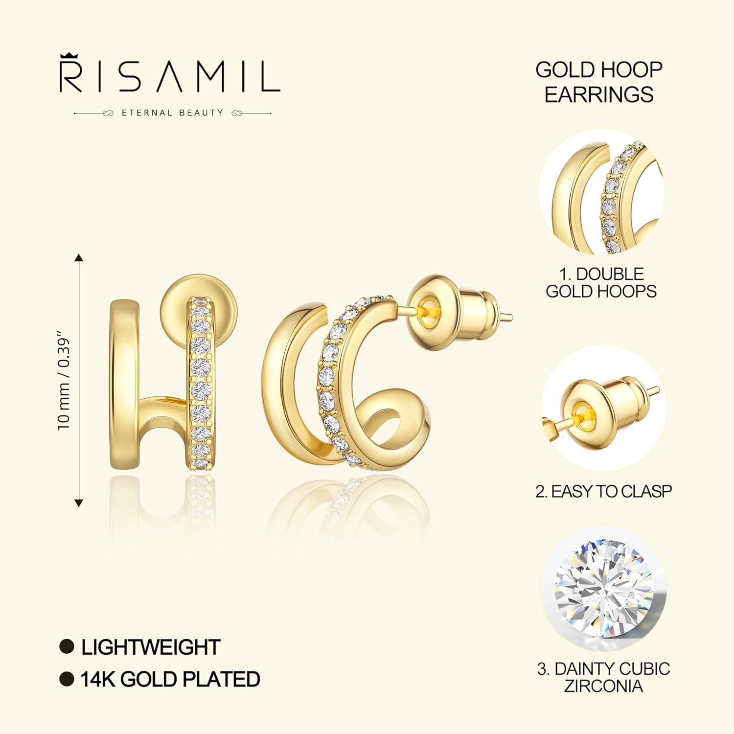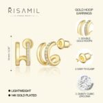 Risamilo Gold Earrings for Women Dainty Cubic Zirconia Studs Small Hoops Lightweight Trendy Jewelry Gift